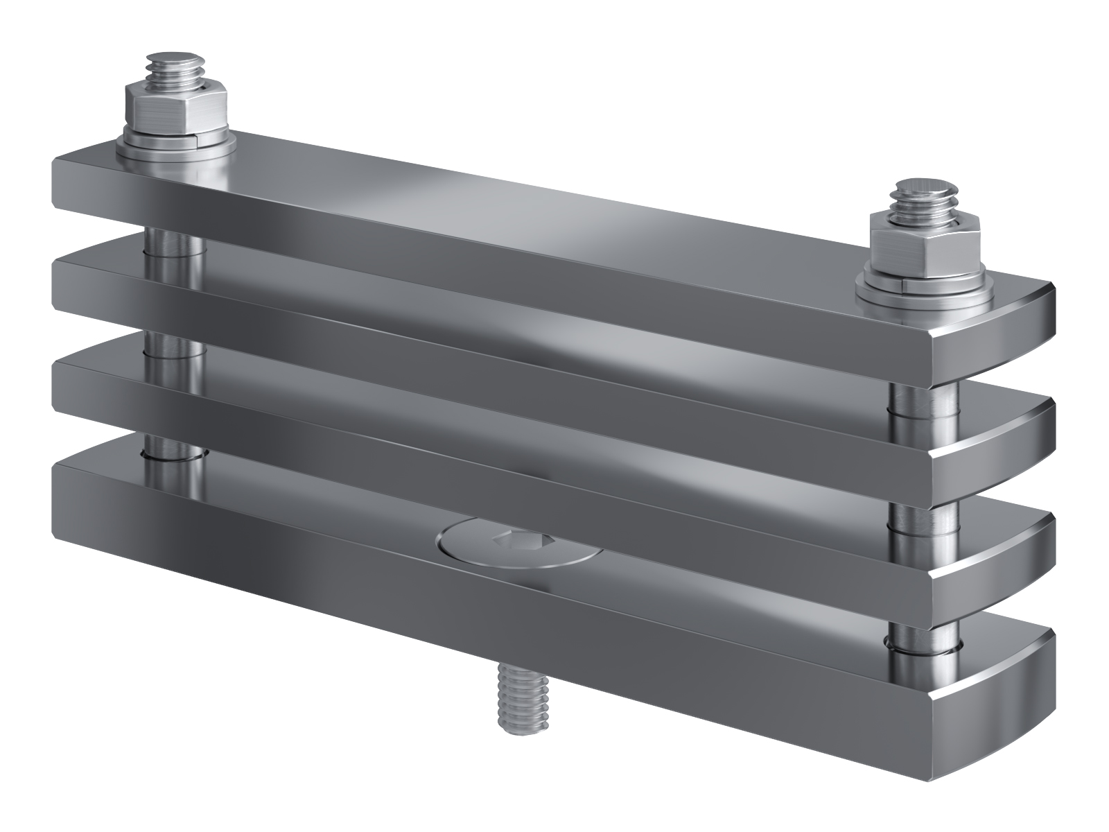 Schienenträger aus vernickeltem Messing zur Befestigung und Sicherung von Stromschienen aus Kupfer