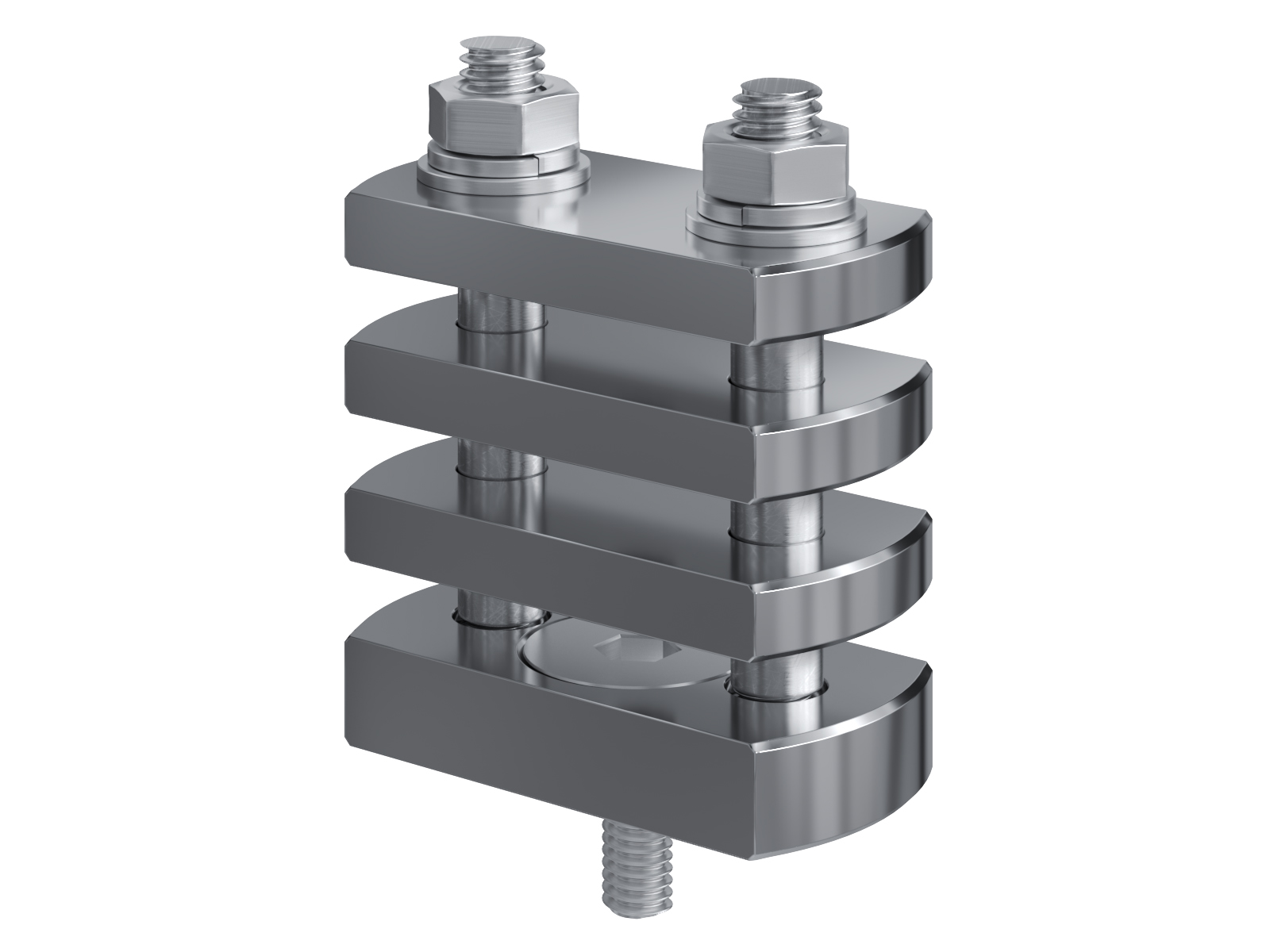 Schienenträger aus vernickeltem Messing zur Befestigung und Sicherung von Stromschienen aus Kupfer