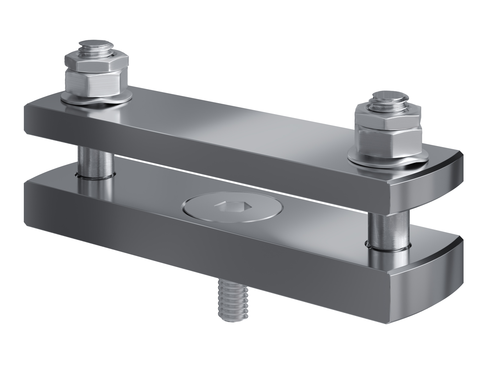 Schienenträger aus vernickeltem Messing zur Befestigung und Sicherung von Stromschienen aus Kupfer