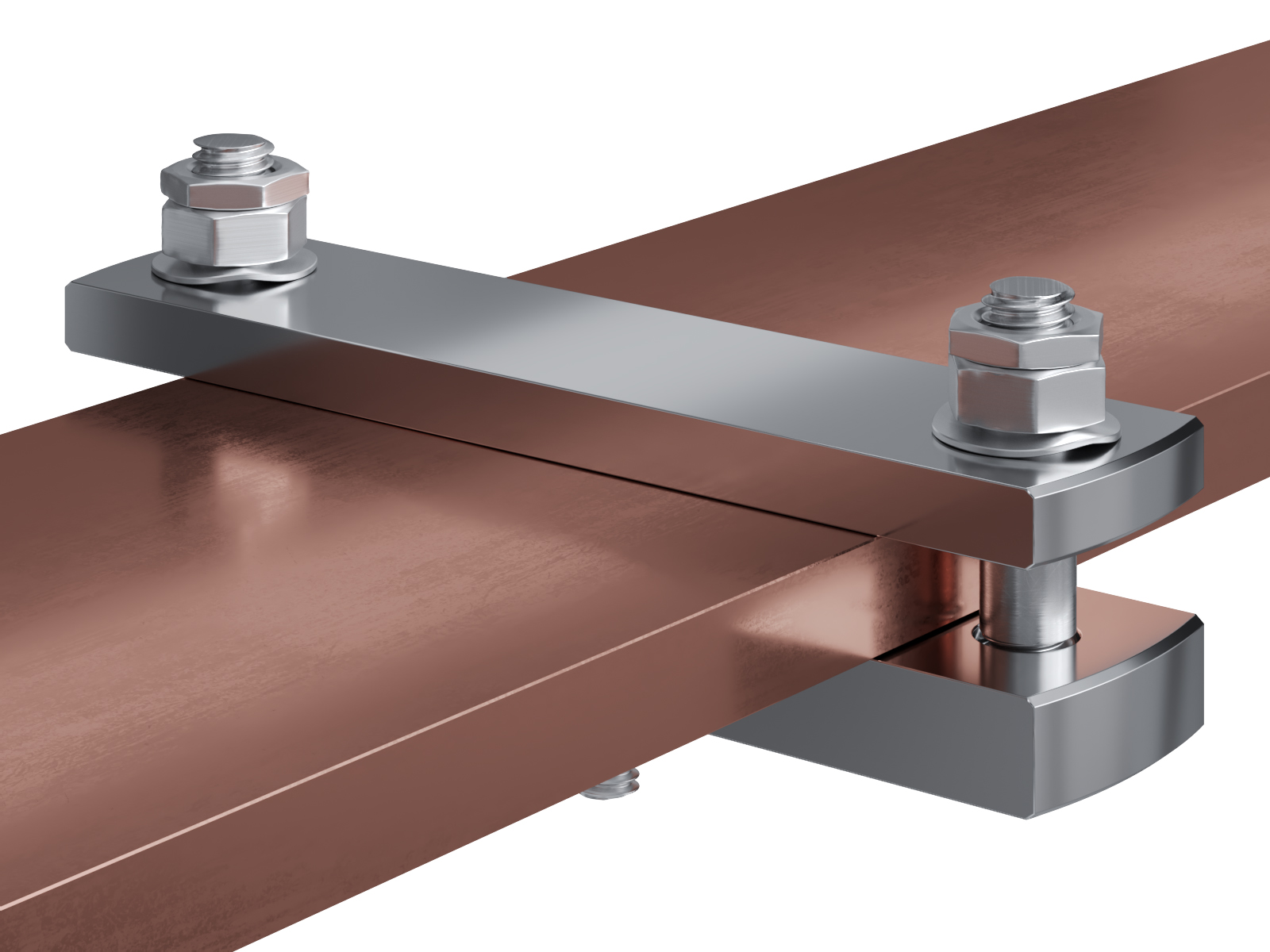 Schienenträger aus vernickeltem Messing zur Befestigung und Sicherung von Stromschienen aus Kupfer
