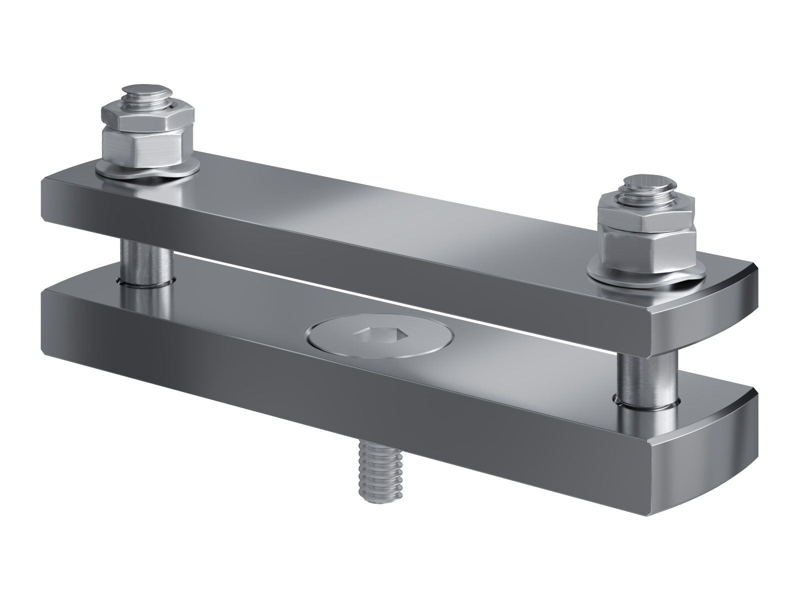 Schienenträger aus vernickeltem Messing zur Befestigung und Sicherung von Stromschienen aus Kupfer