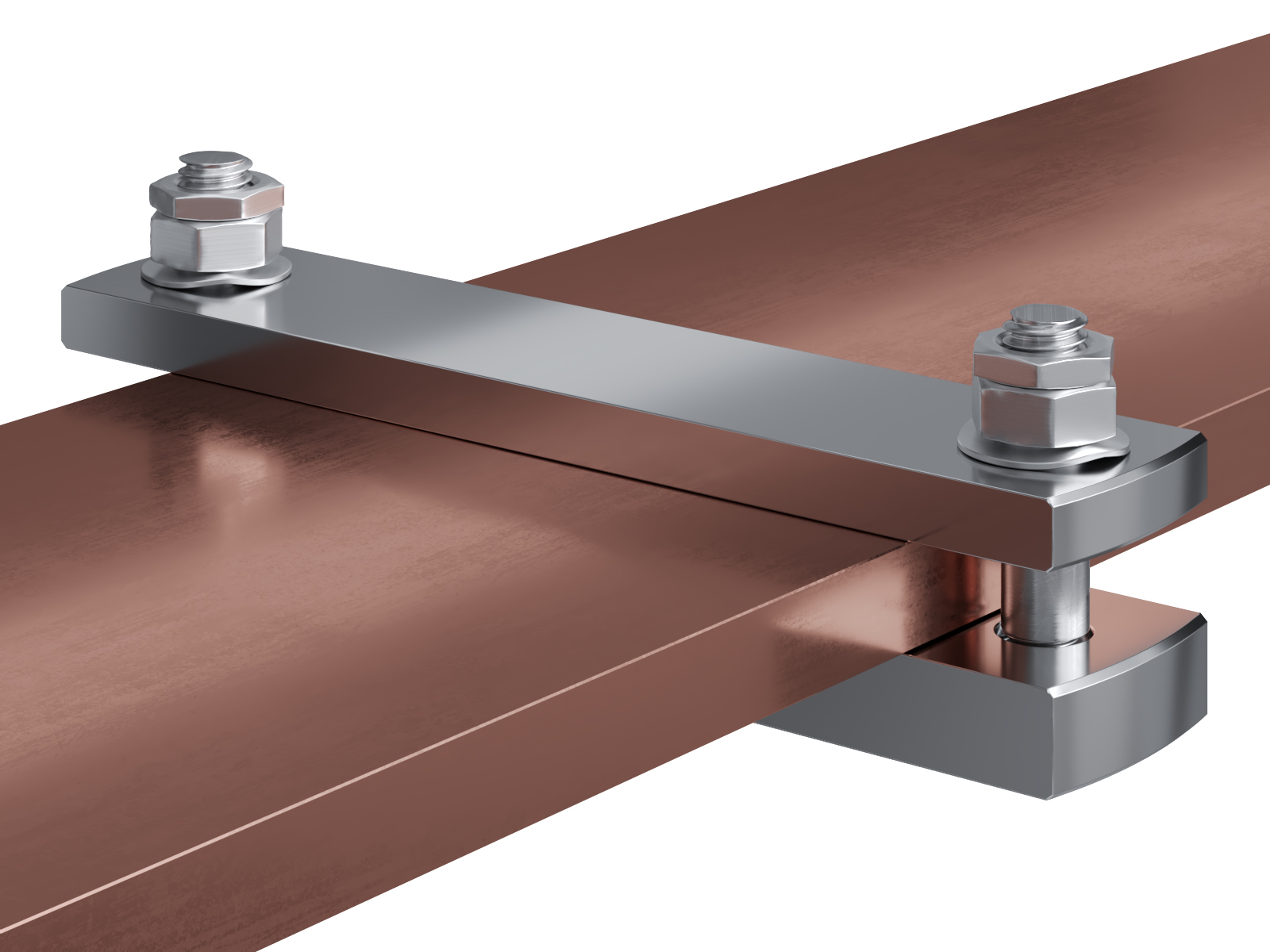 Schienenträger aus vernickeltem Messing zur Befestigung und Sicherung von Stromschienen aus Kupfer