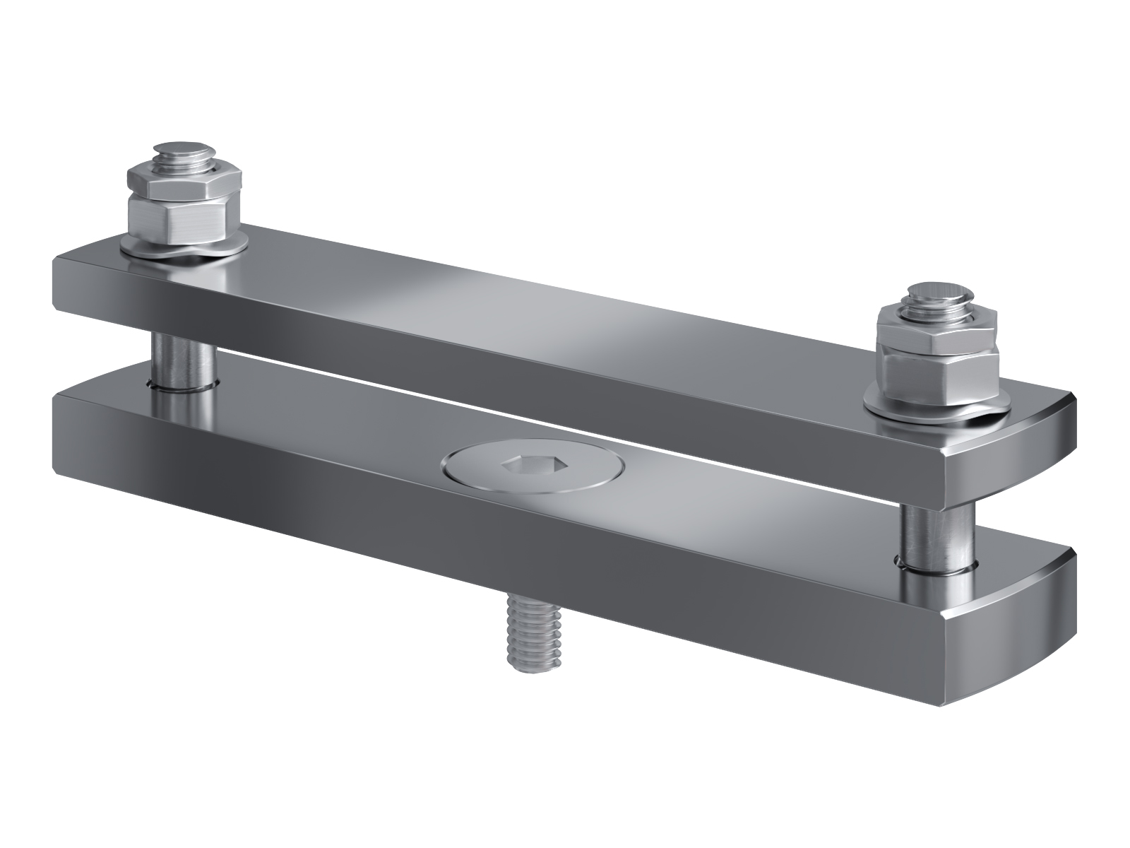 Schienenträger aus vernickeltem Messing zur Befestigung und Sicherung von Stromschienen aus Kupfer