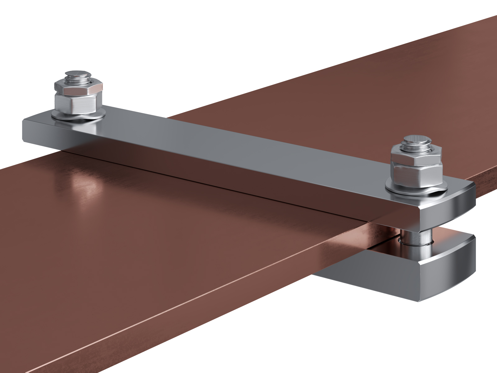 Schienenträger aus vernickeltem Messing zur Befestigung und Sicherung von Stromschienen aus Kupfer