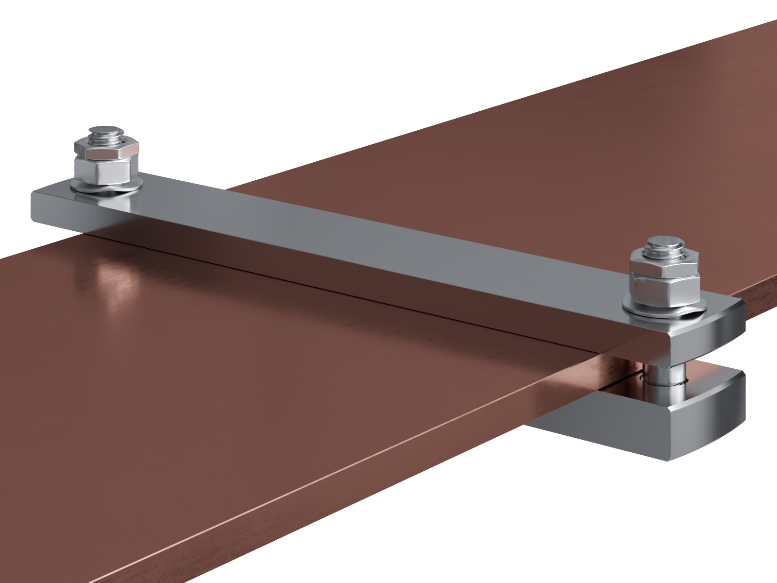 Schienenträger aus vernickeltem Messing zur Befestigung und Sicherung von Stromschienen aus Kupfer