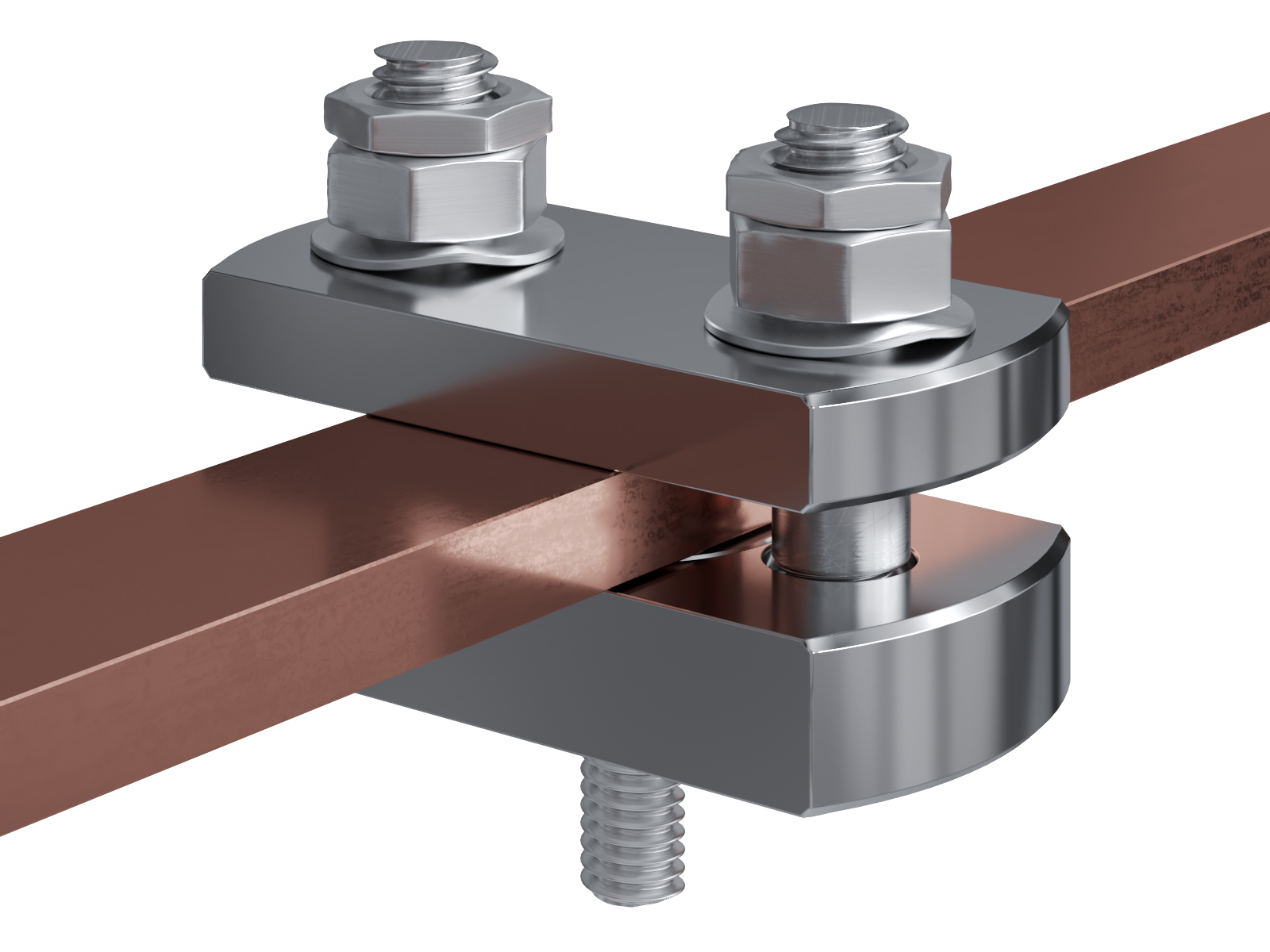 Schienenträger aus vernickeltem Messing zur Befestigung und Sicherung von Stromschienen aus Kupfer