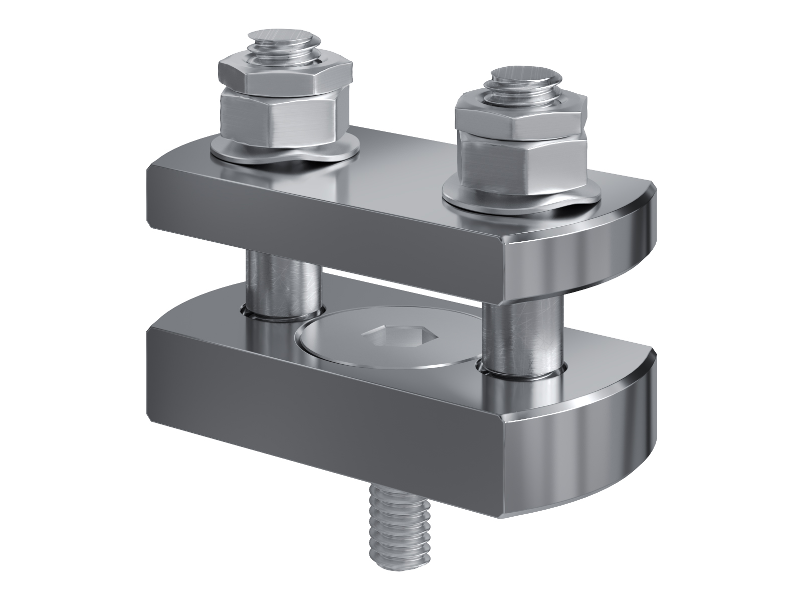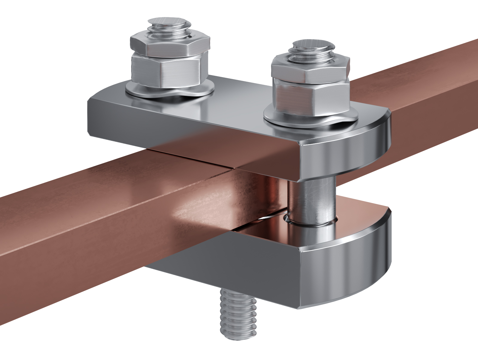 Schienenträger aus vernickeltem Messing zur Befestigung und Sicherung von Stromschienen aus Kupfer