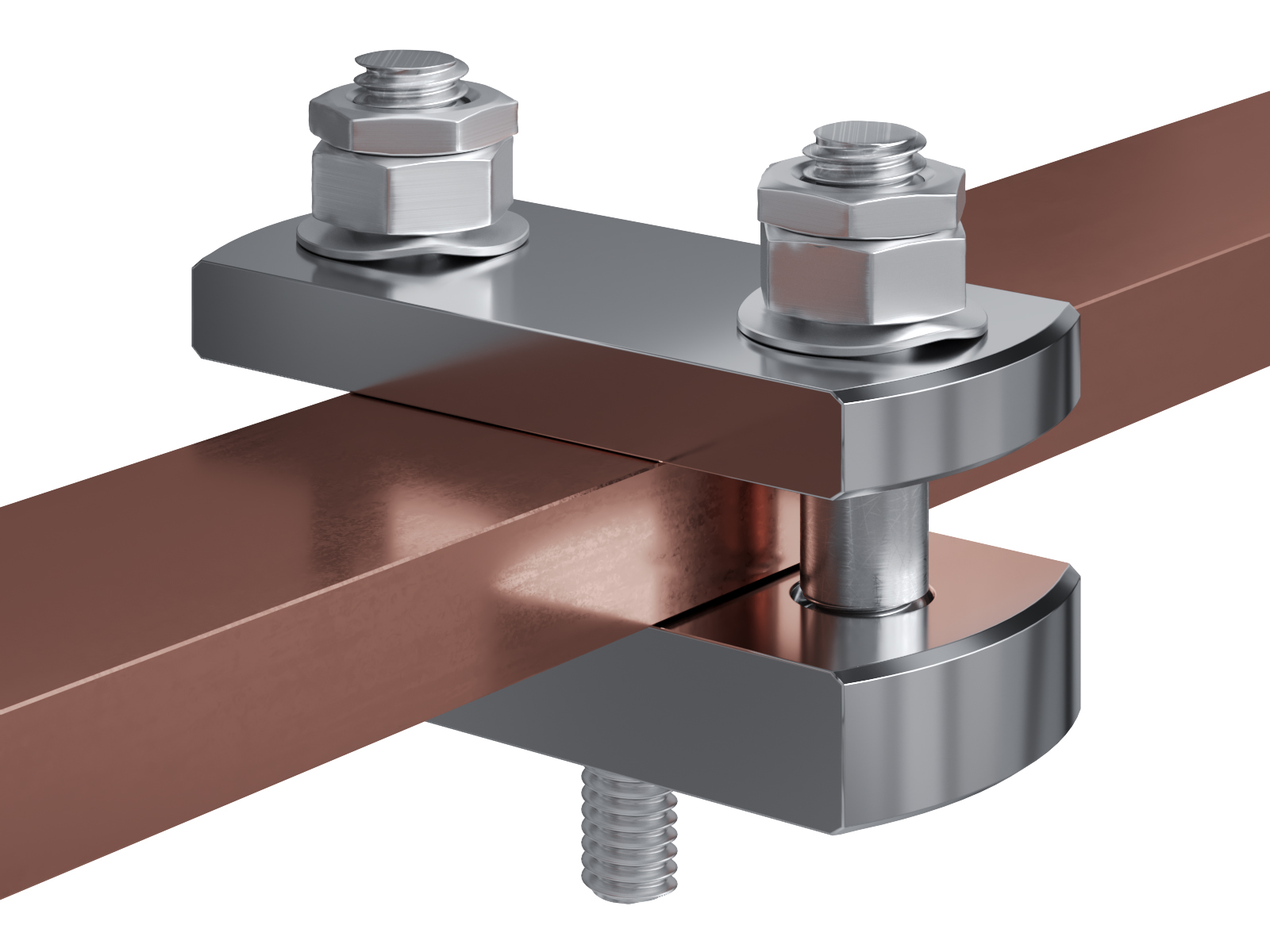 Schienenträger aus vernickeltem Messing zur Befestigung und Sicherung von Stromschienen aus Kupfer