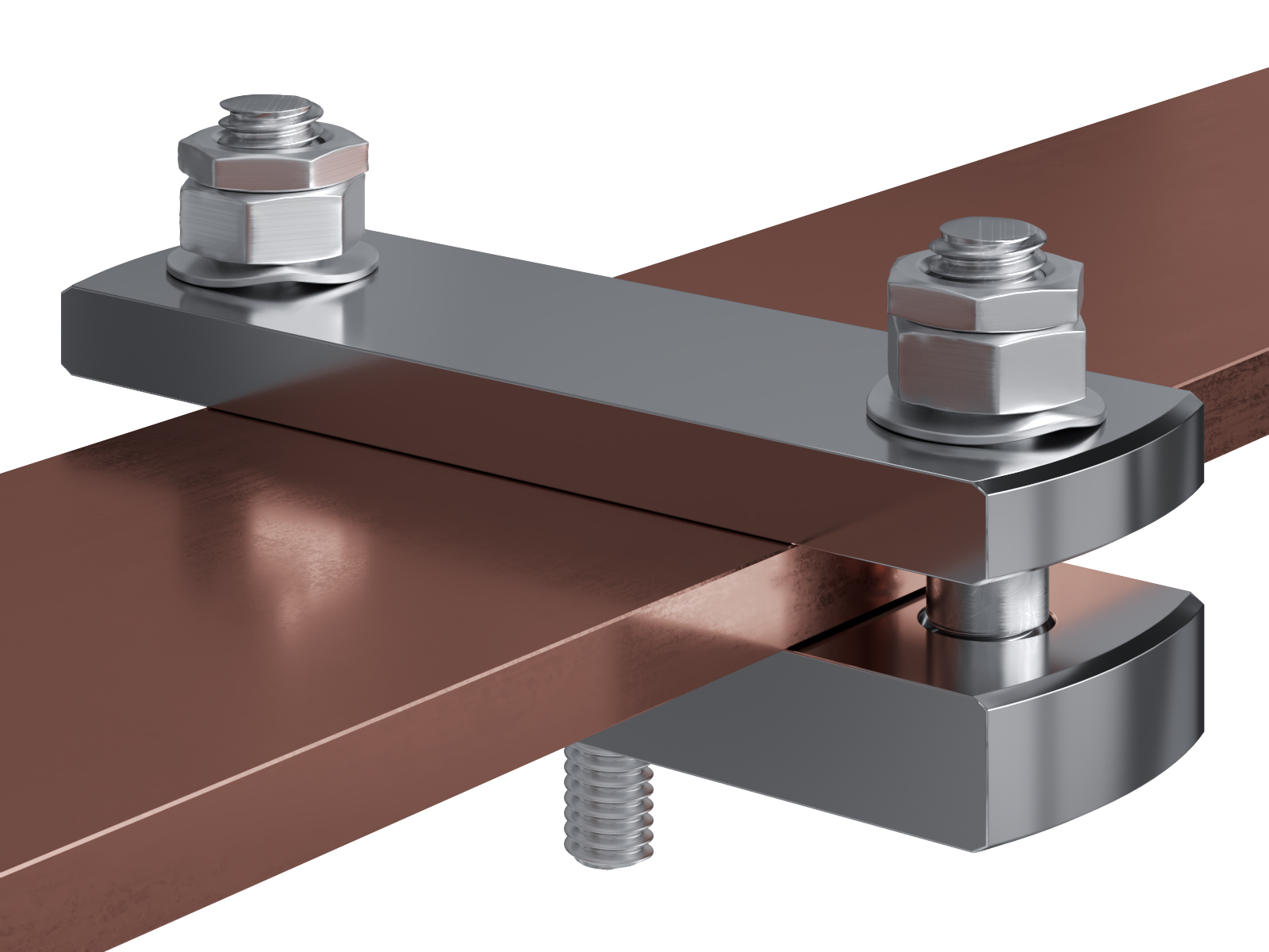 Schienenträger aus vernickeltem Messing zur Befestigung und Sicherung von Stromschienen aus Kupfer