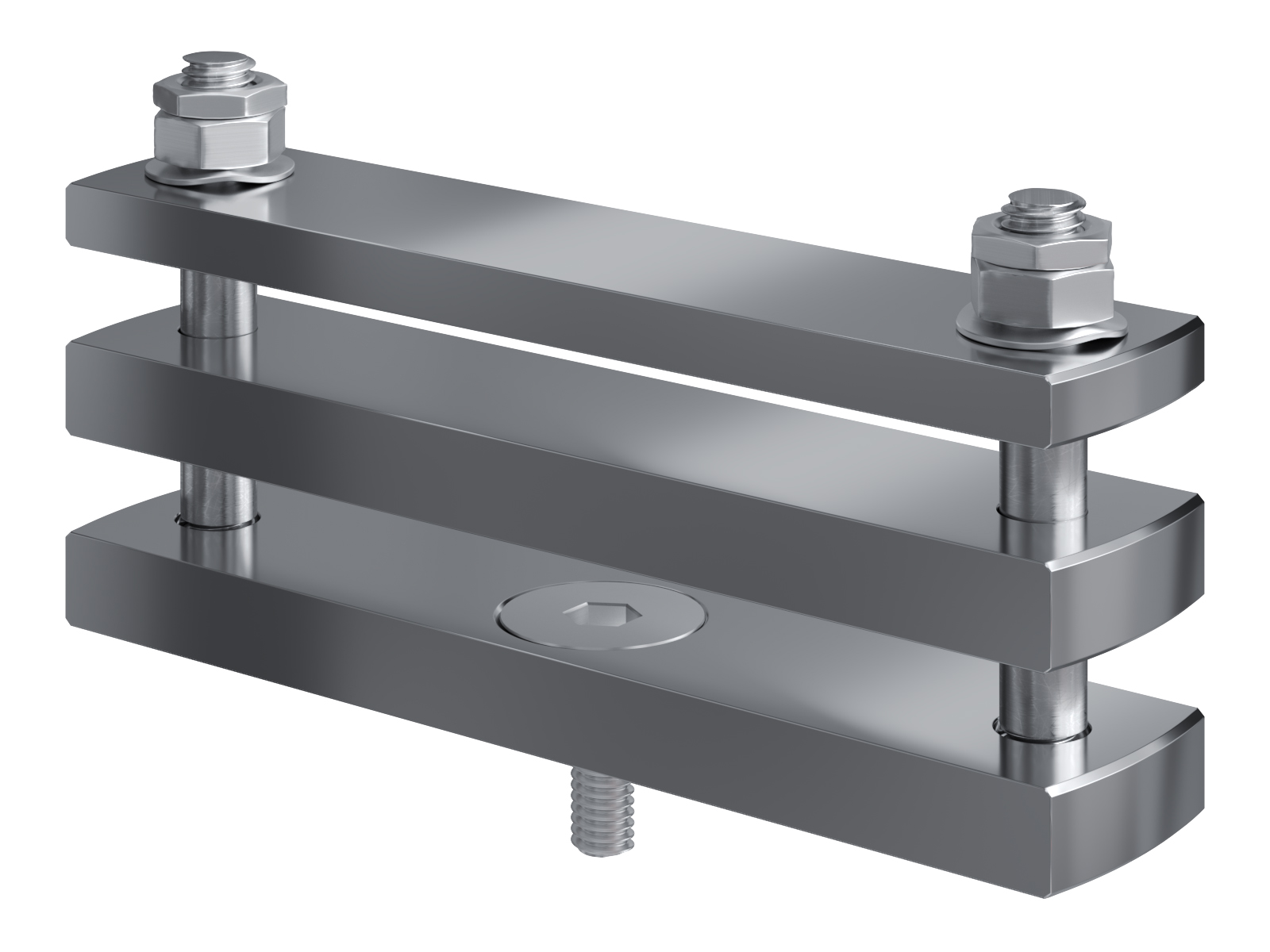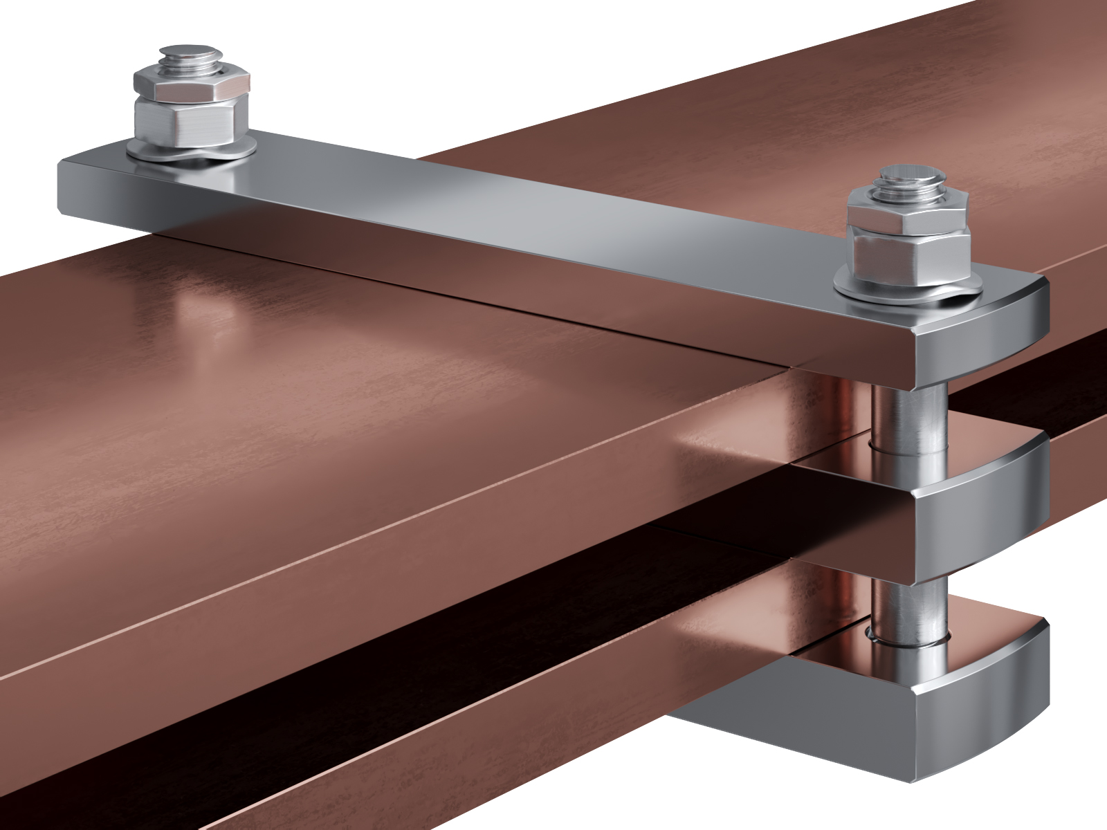 Schienenträger aus vernickeltem Messing zur Befestigung und Sicherung von Stromschienen aus Kupfer