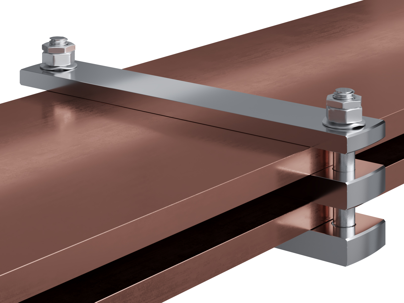 Schienenträger aus vernickeltem Messing zur Befestigung und Sicherung von Stromschienen aus Kupfer