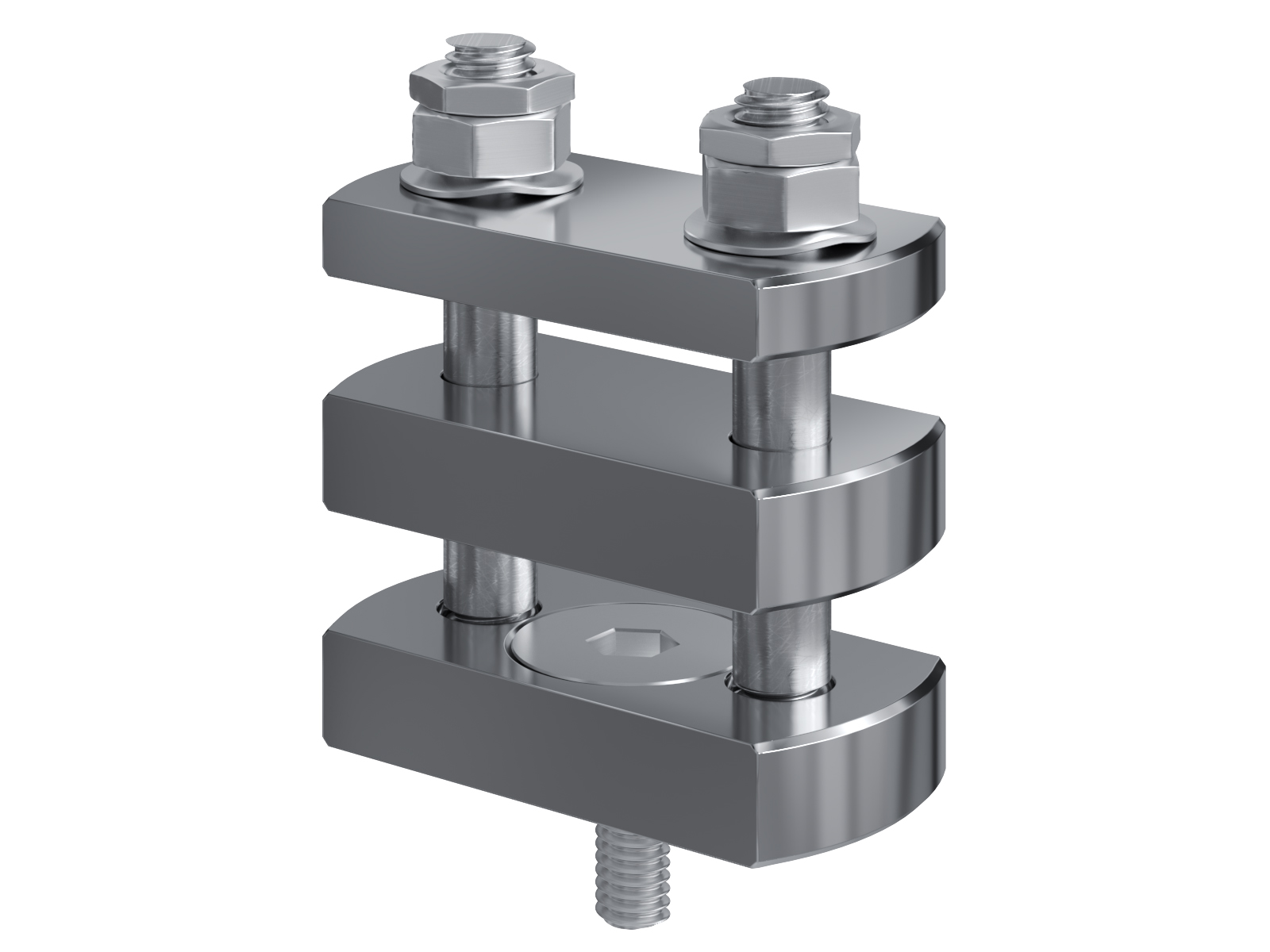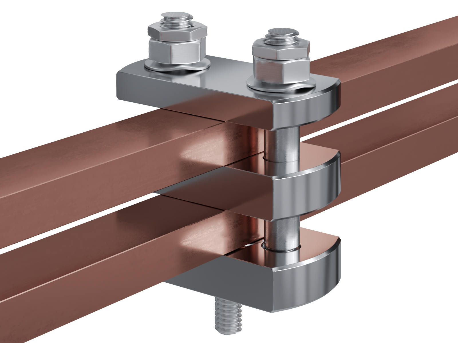 Schienenträger aus vernickeltem Messing zur Befestigung und Sicherung von Stromschienen aus Kupfer