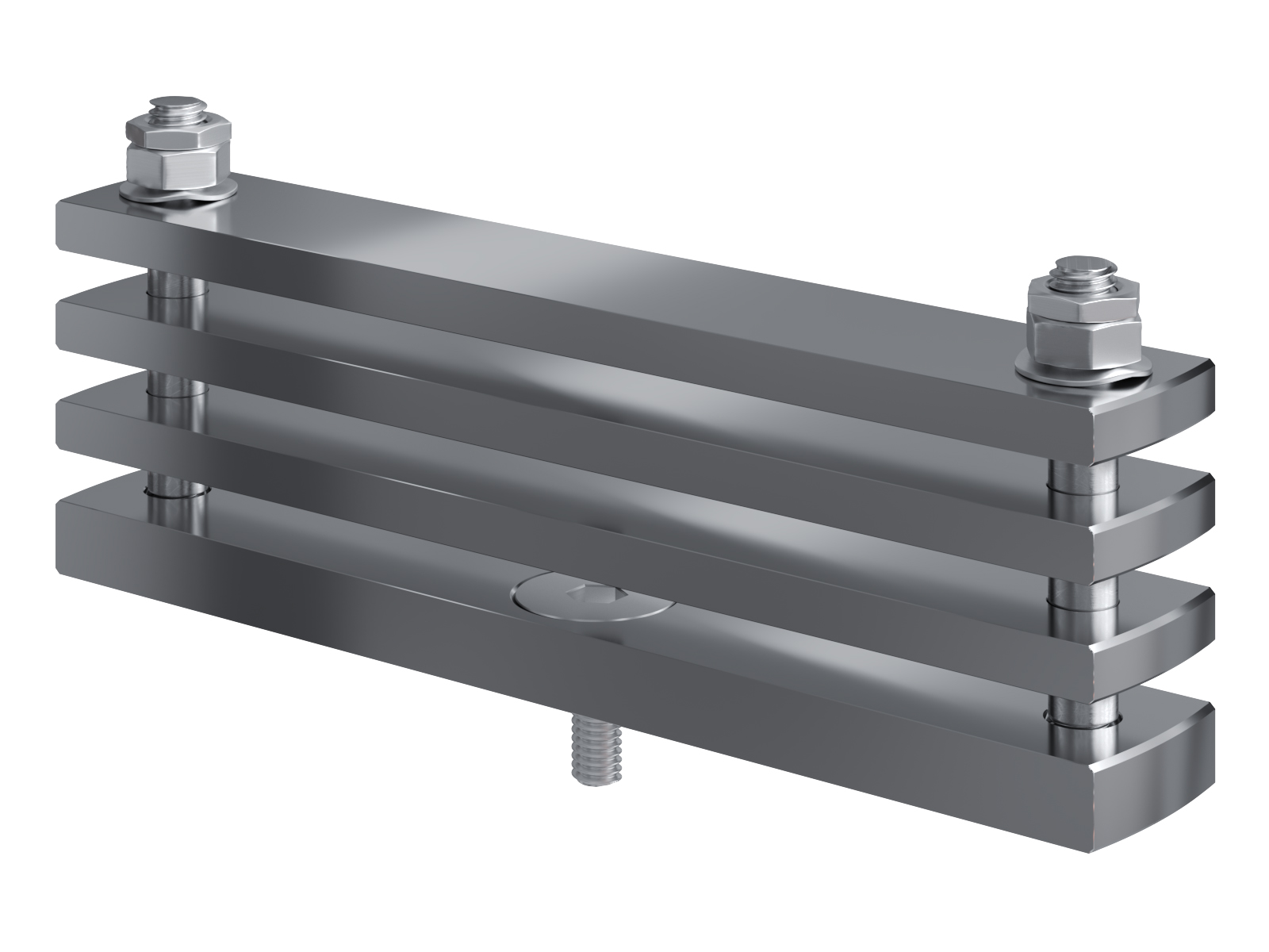 Schienenträger aus vernickeltem Messing zur Befestigung und Sicherung von Stromschienen aus Kupfer