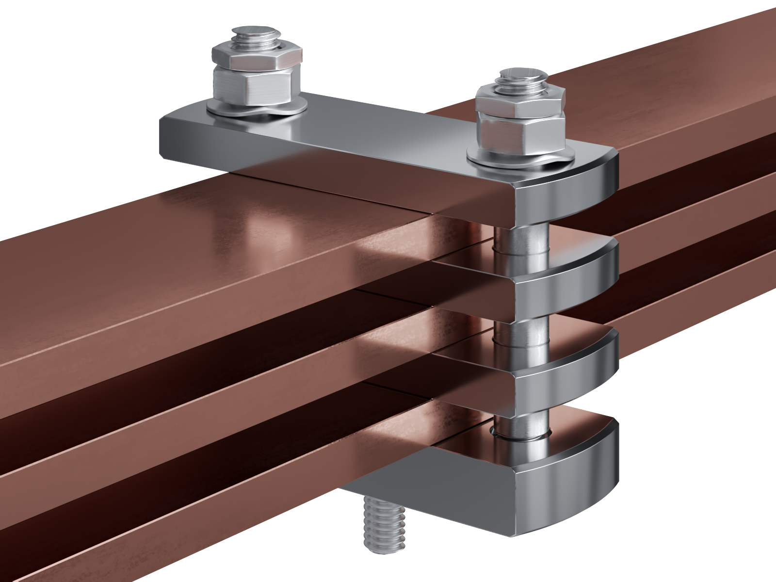 Schienenträger aus vernickeltem Messing zur Befestigung und Sicherung von Stromschienen aus Kupfer