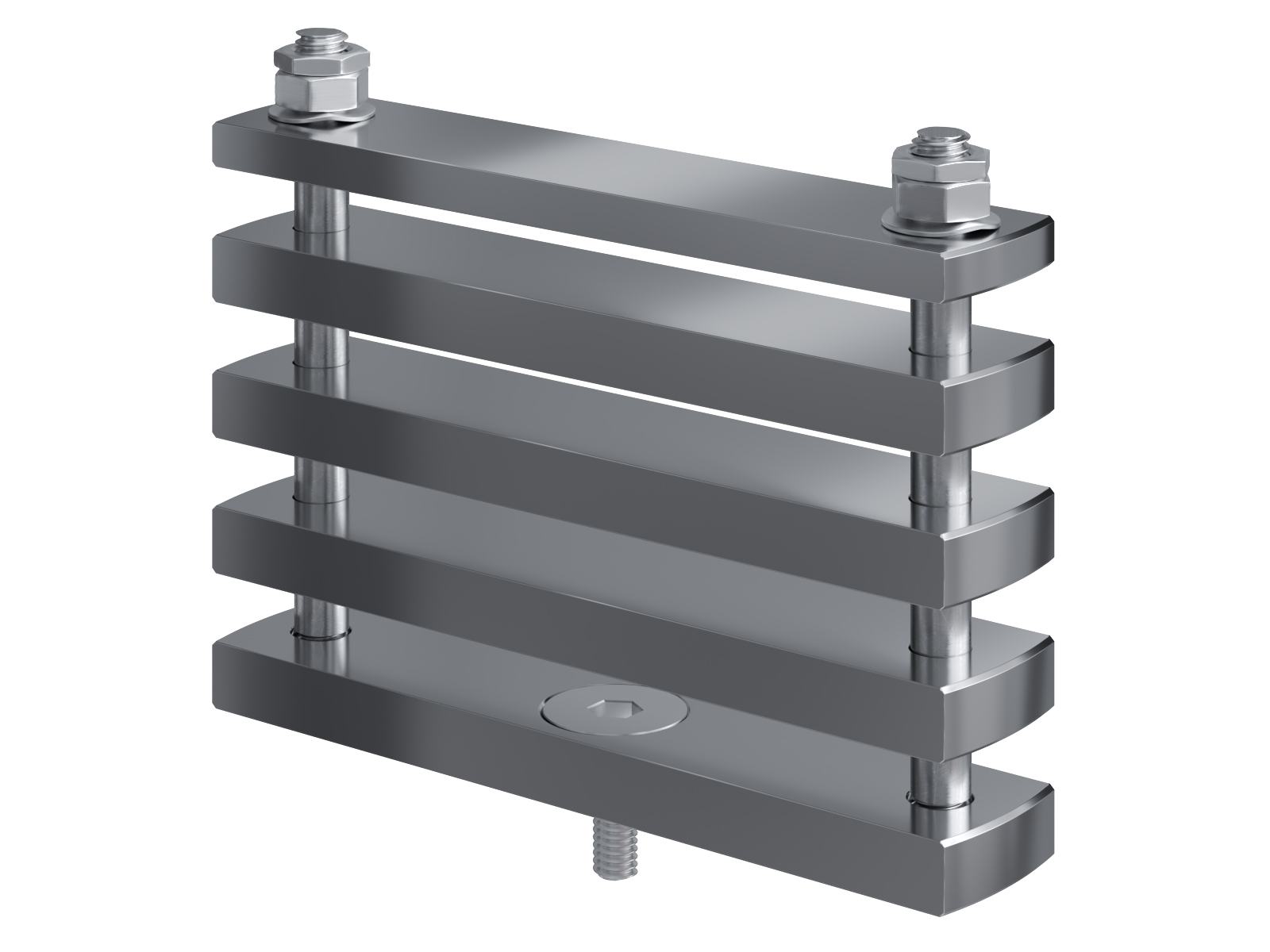 Schienenträger aus vernickeltem Messing zur Befestigung und Sicherung von Stromschienen aus Kupfer