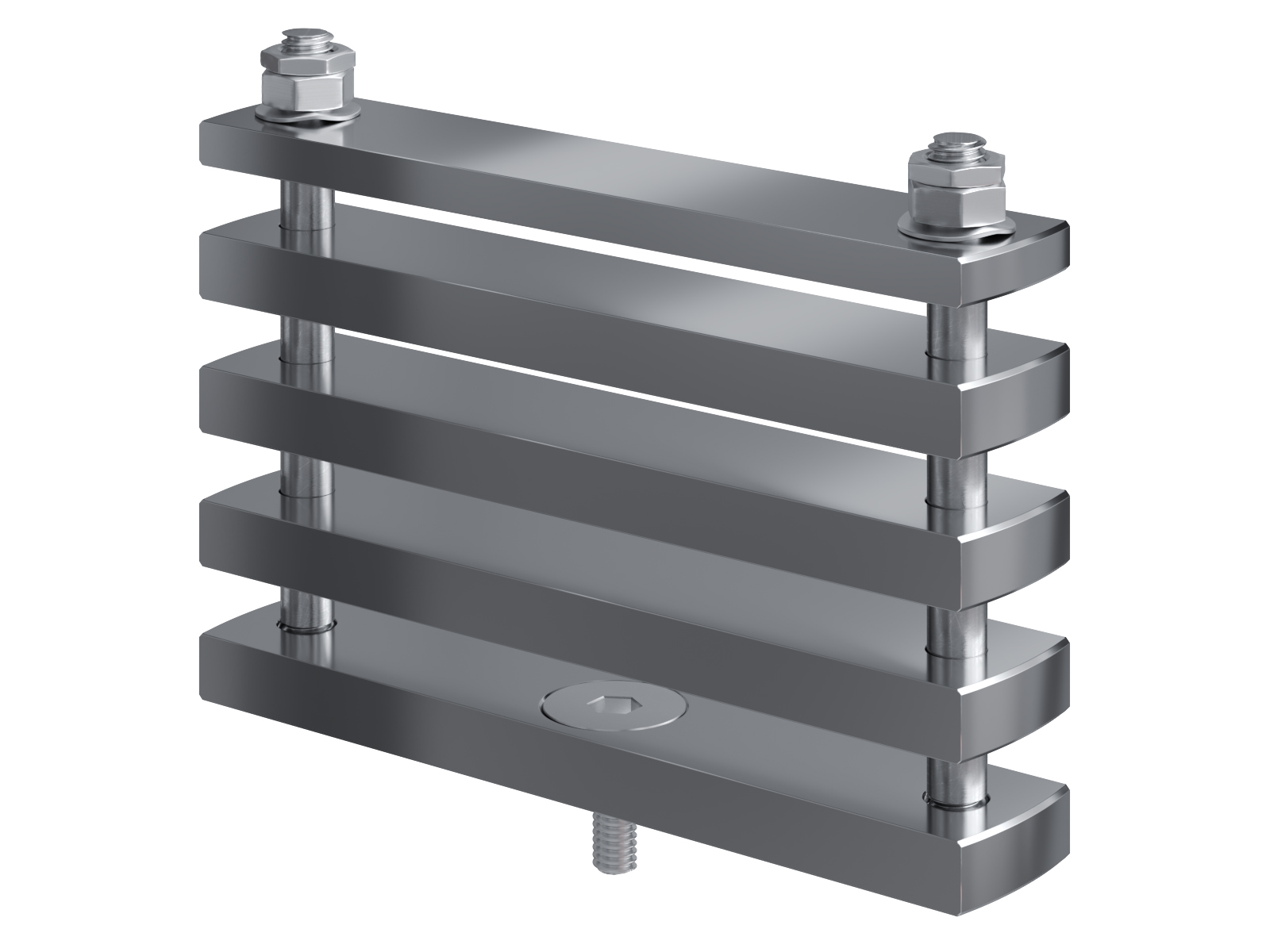 Schienenträger aus vernickeltem Messing zur Befestigung und Sicherung von Stromschienen aus Kupfer
