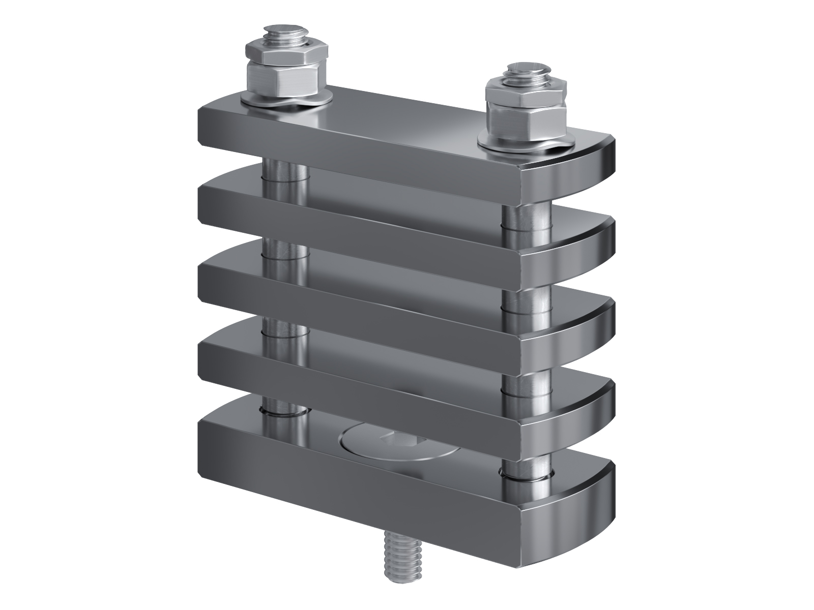 Schienenträger aus vernickeltem Messing zur Befestigung und Sicherung von Stromschienen aus Kupfer