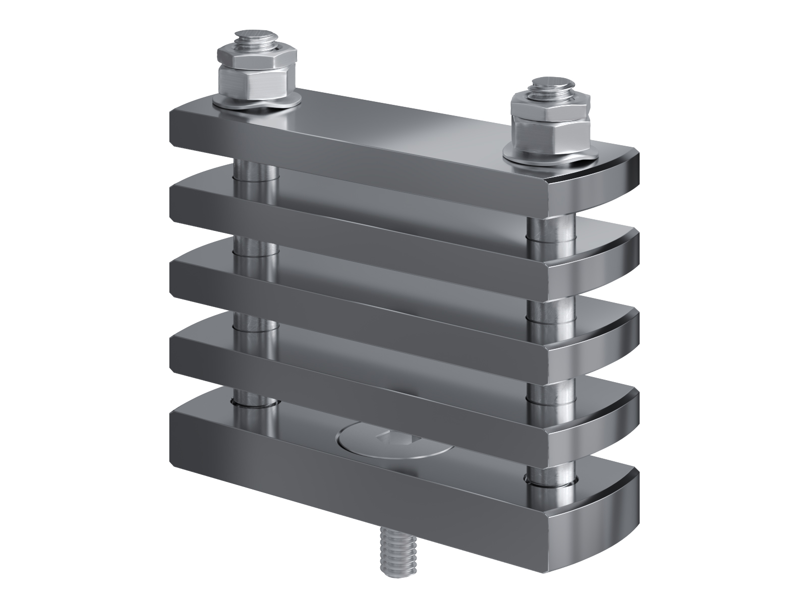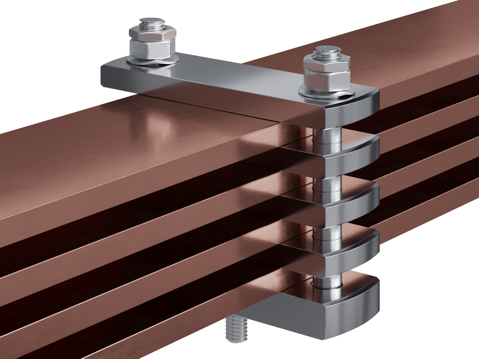 Schienenträger aus vernickeltem Messing zur Befestigung und Sicherung von Stromschienen aus Kupfer