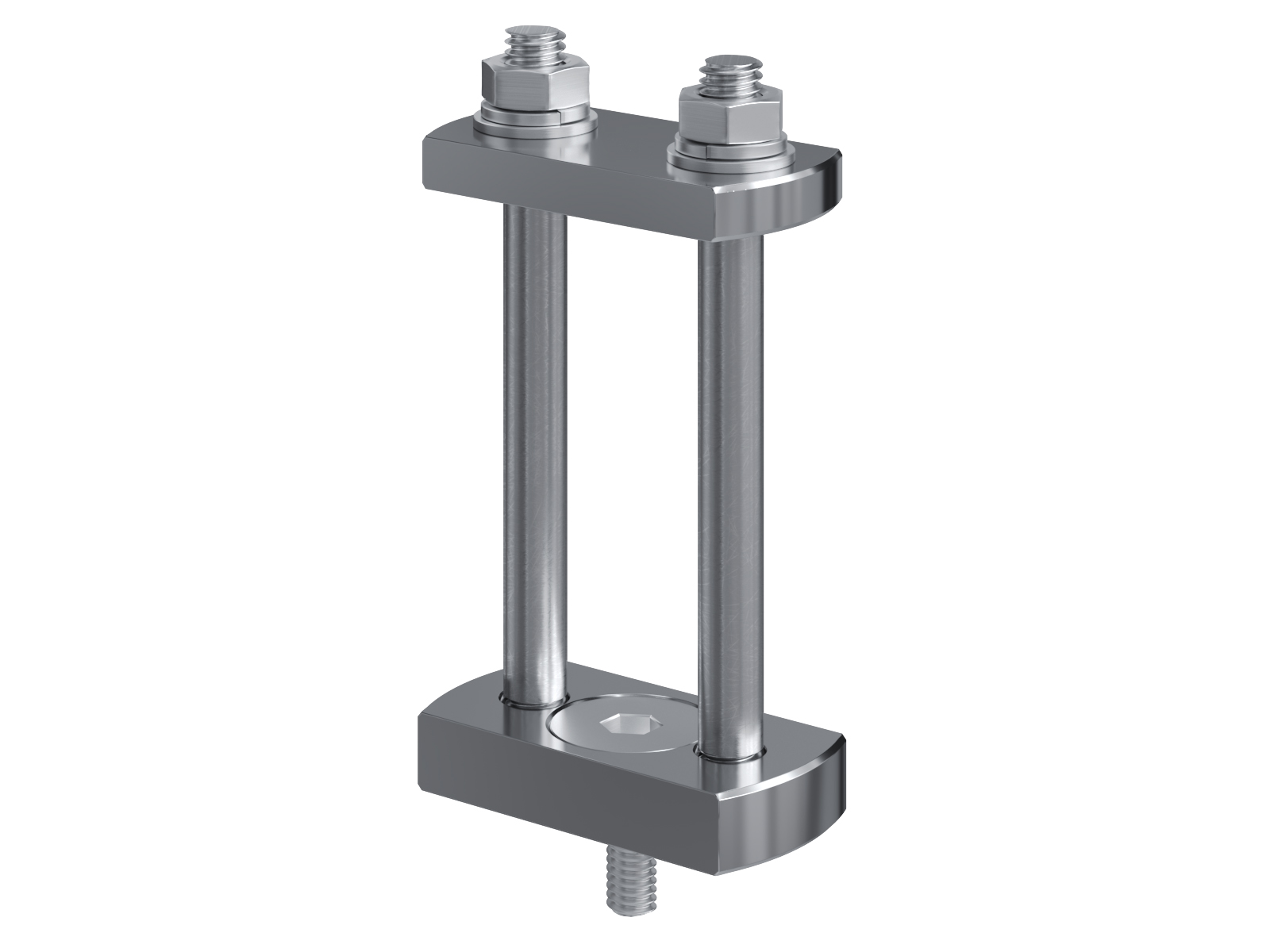 Schienenträger aus vernickeltem Messing zur Befestigung und Sicherung von Stromschienen aus Kupfer