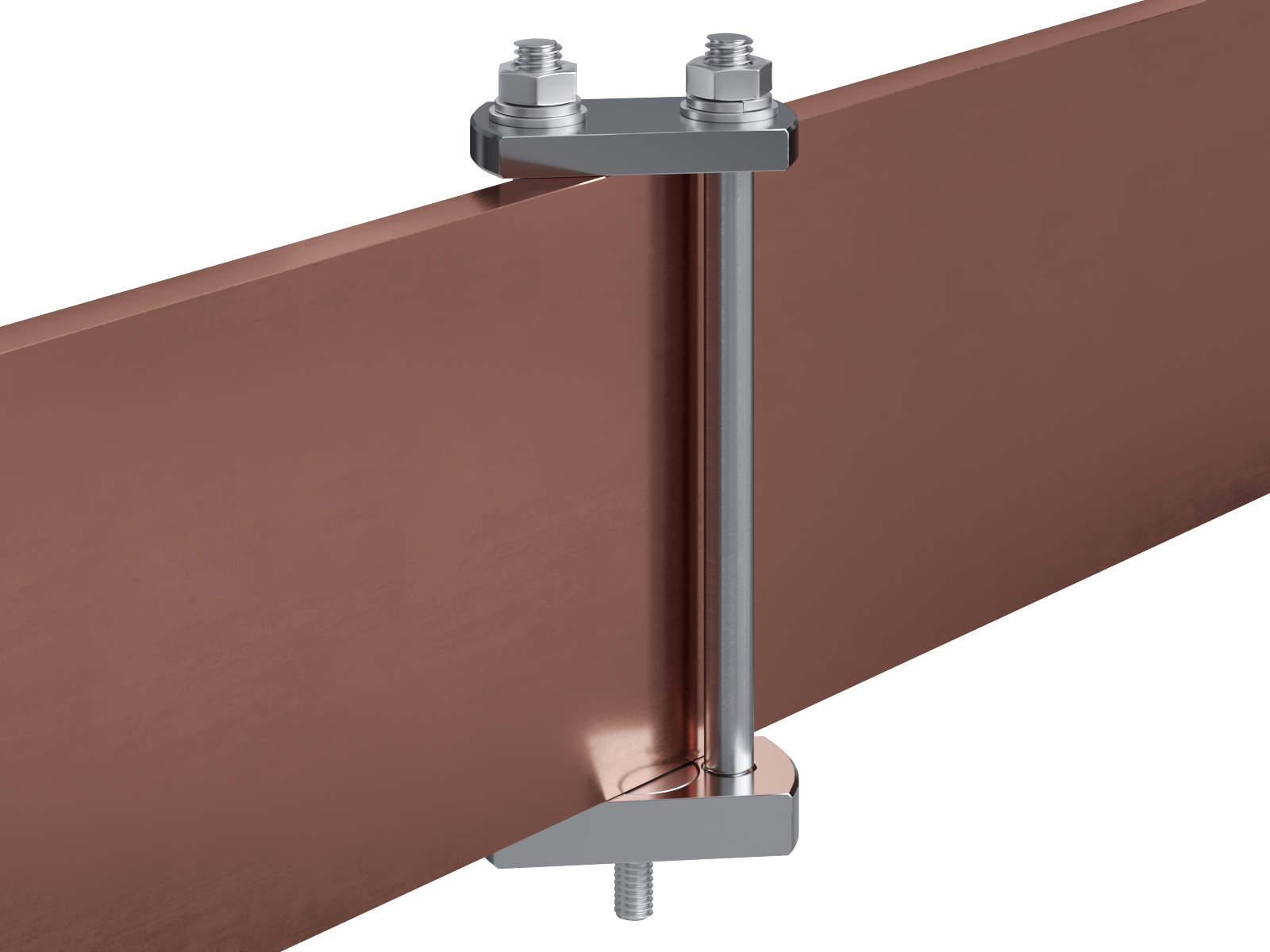 Schienenträger aus vernickeltem Messing zur Befestigung und Sicherung von Stromschienen aus Kupfer