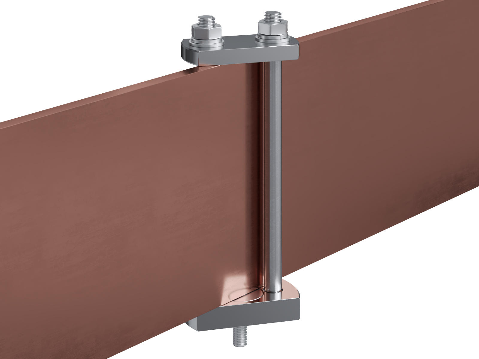 Schienenträger aus vernickeltem Messing zur Befestigung und Sicherung von Stromschienen aus Kupfer