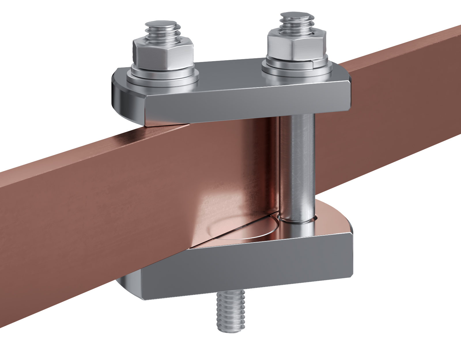 Schienenträger aus vernickeltem Messing zur Befestigung und Sicherung von Stromschienen aus Kupfer