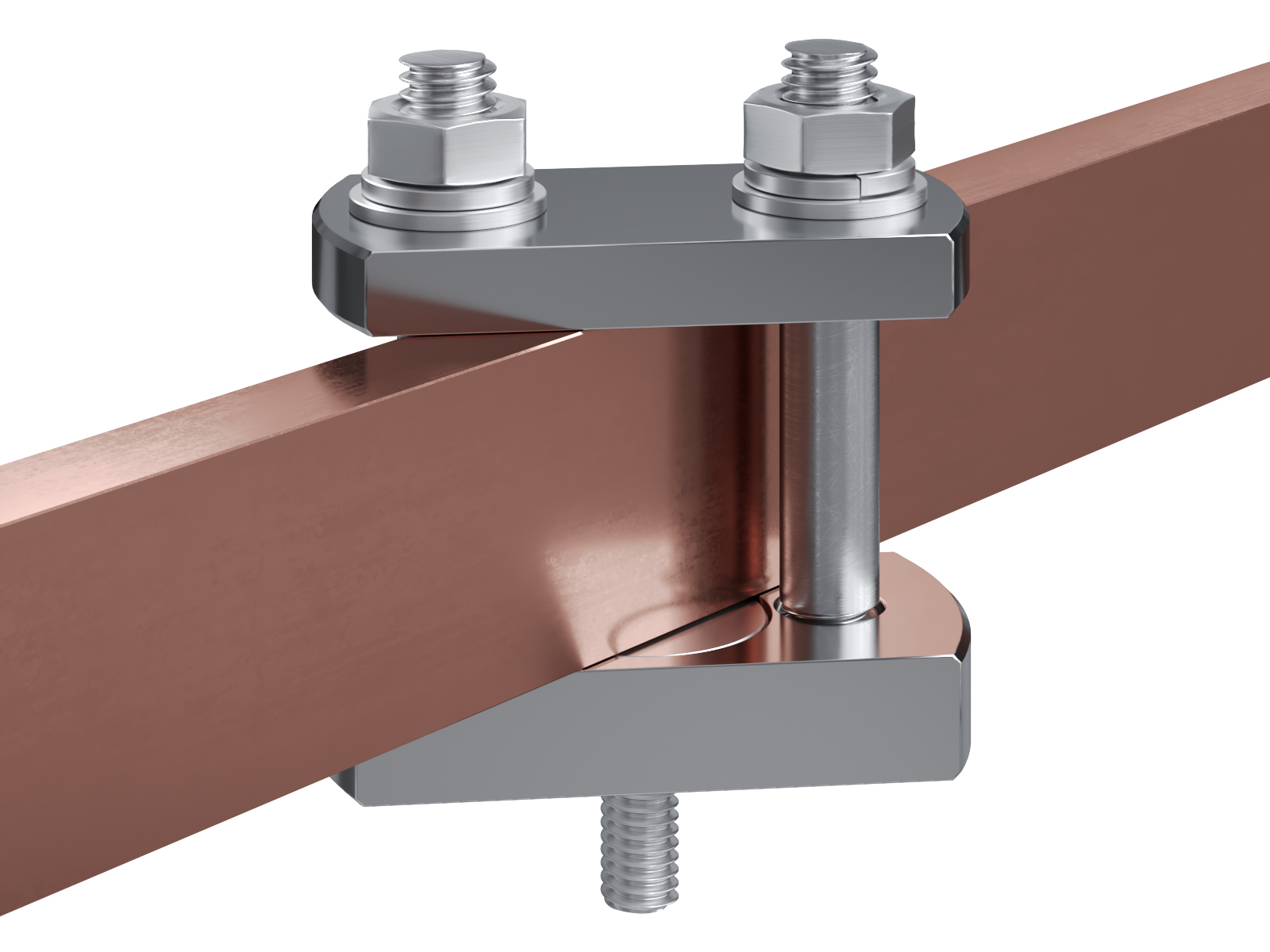 Schienenträger aus vernickeltem Messing zur Befestigung und Sicherung von Stromschienen aus Kupfer