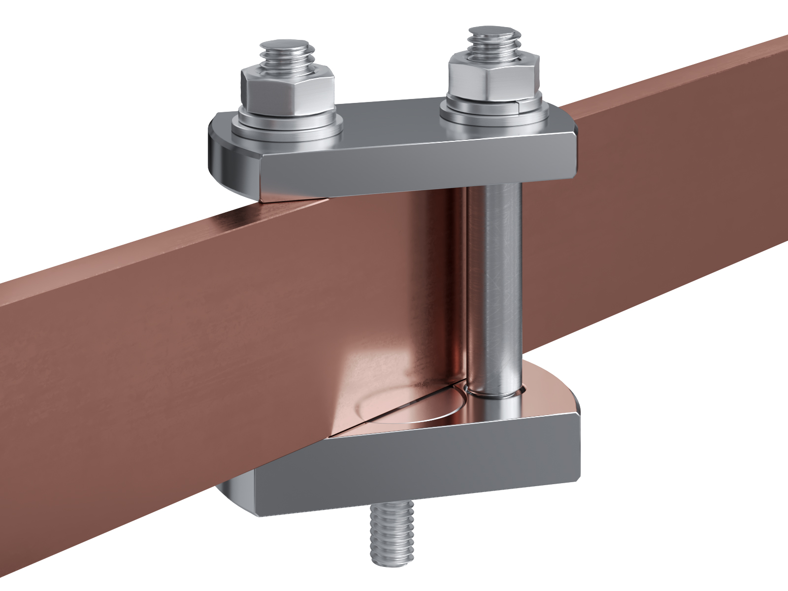 Schienenträger aus vernickeltem Messing zur Befestigung und Sicherung von Stromschienen aus Kupfer