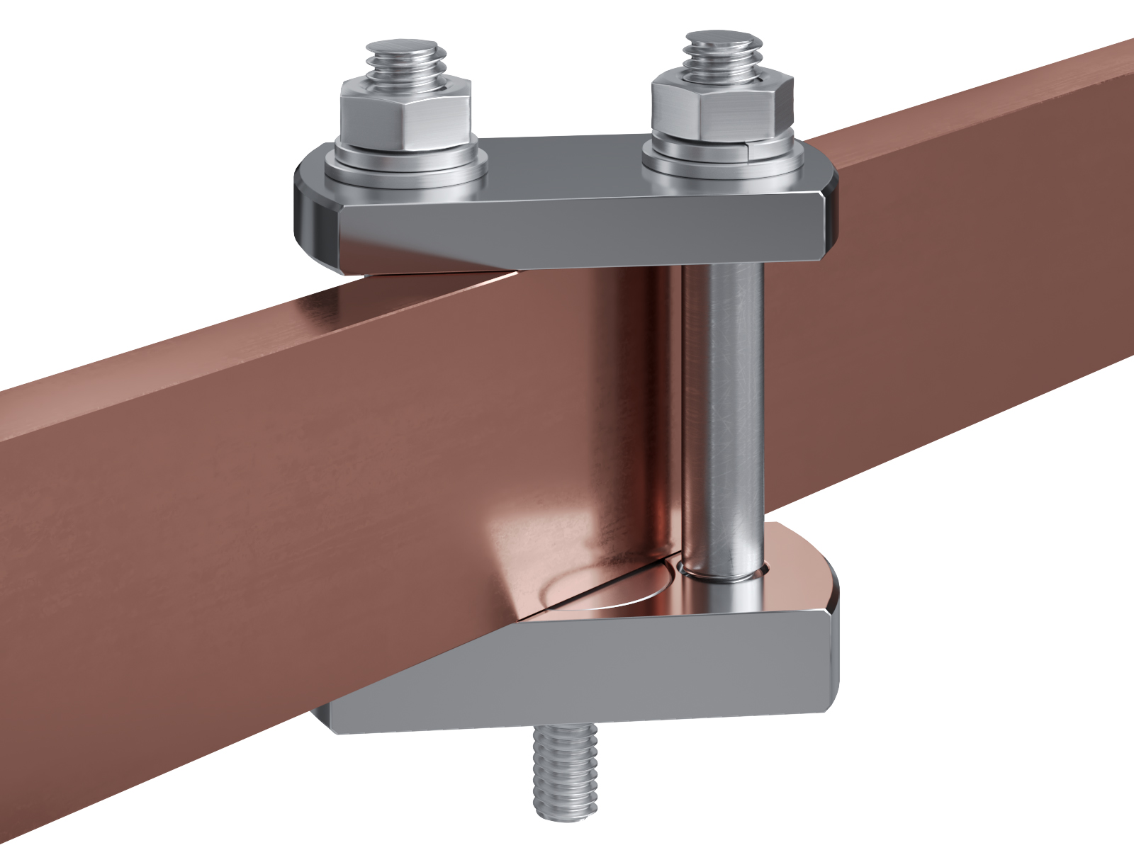Schienenträger aus vernickeltem Messing zur Befestigung und Sicherung von Stromschienen aus Kupfer