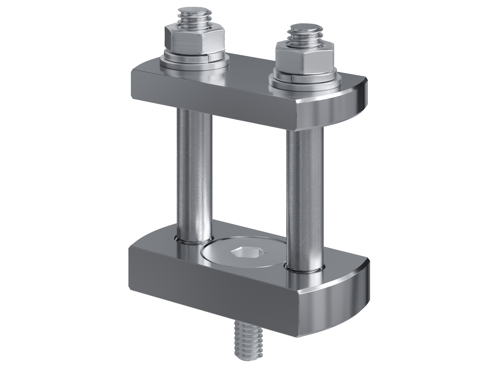 Schienenträger aus vernickeltem Messing zur Befestigung und Sicherung von Stromschienen aus Kupfer
