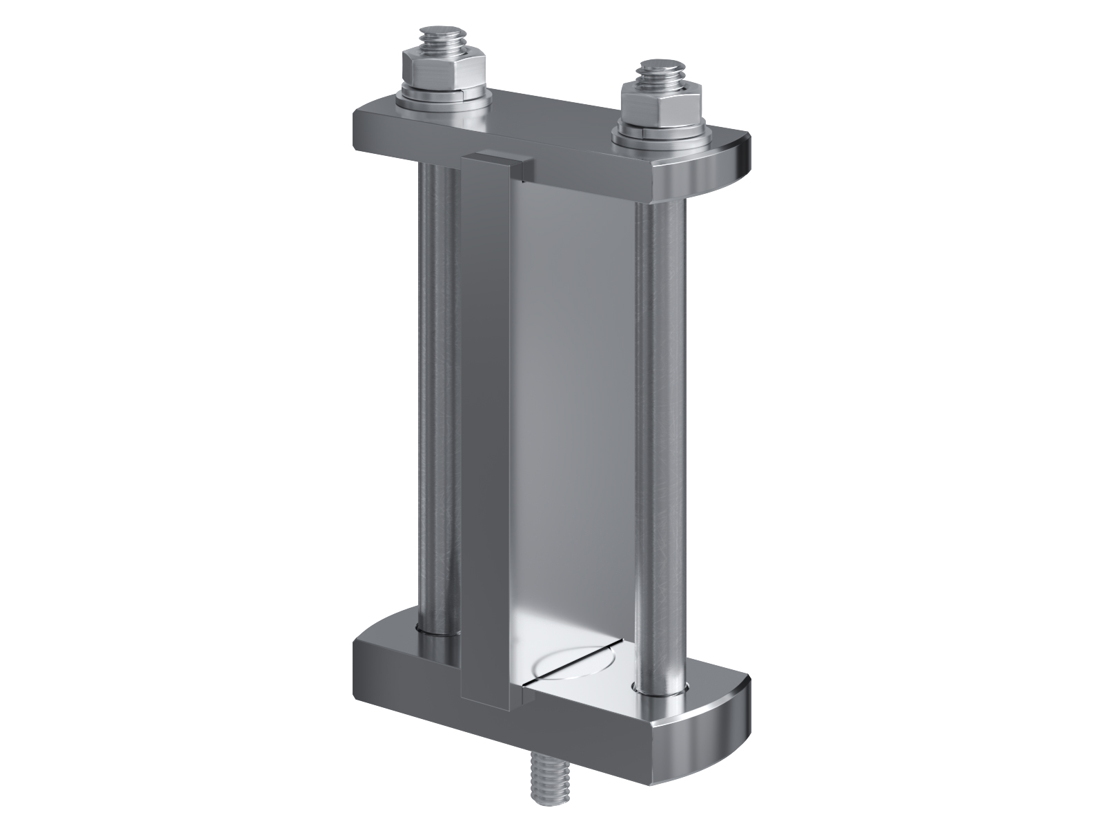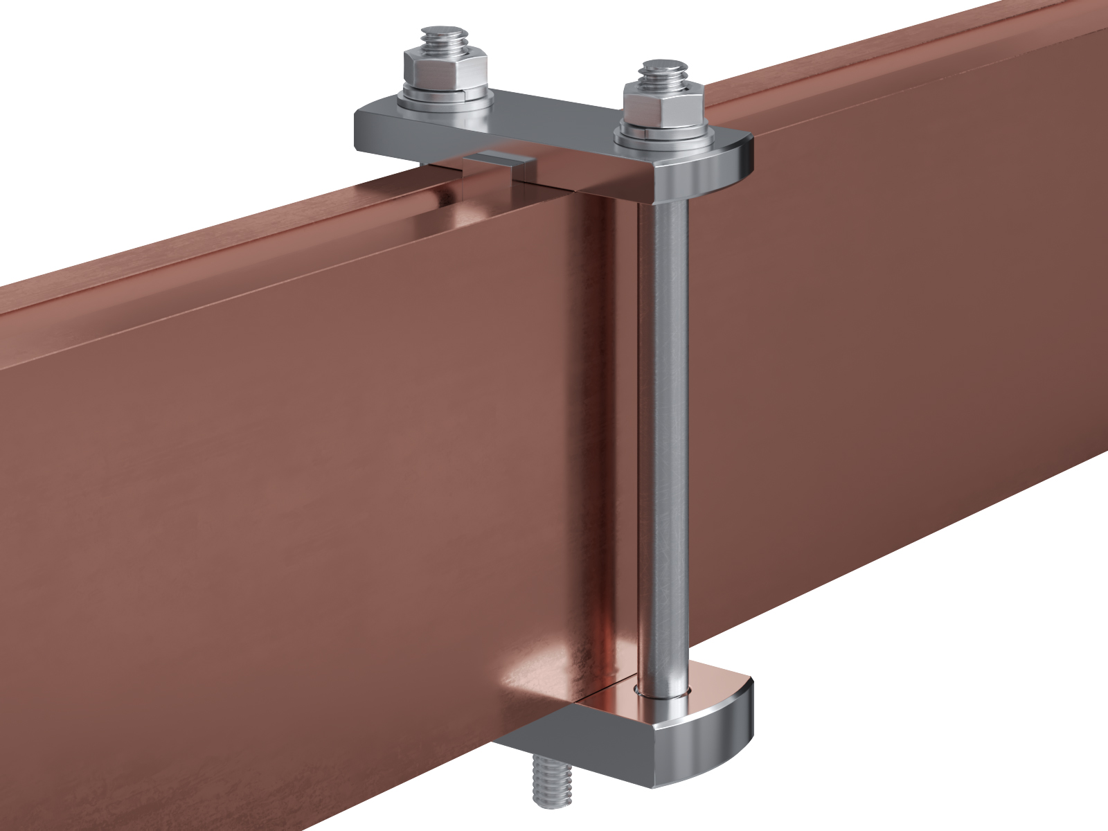 Schienenträger aus vernickeltem Messing zur Befestigung und Sicherung von Stromschienen aus Kupfer