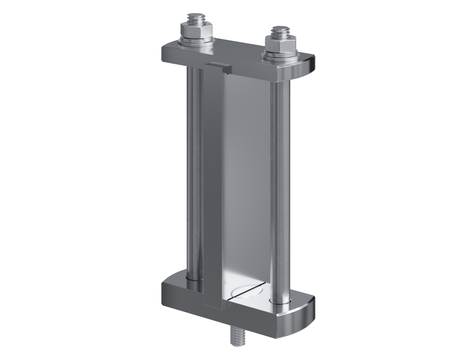 Schienenträger aus vernickeltem Messing zur Befestigung und Sicherung von Stromschienen aus Kupfer