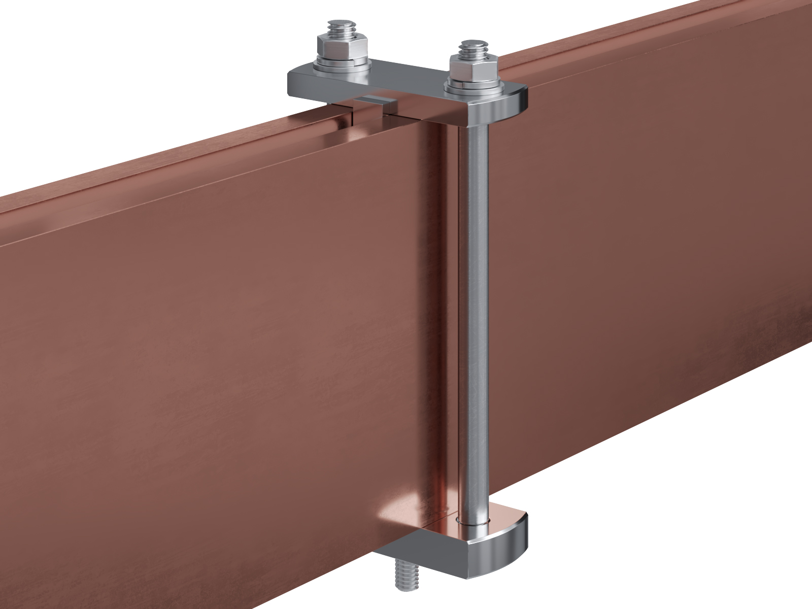 Schienenträger aus vernickeltem Messing zur Befestigung und Sicherung von Stromschienen aus Kupfer