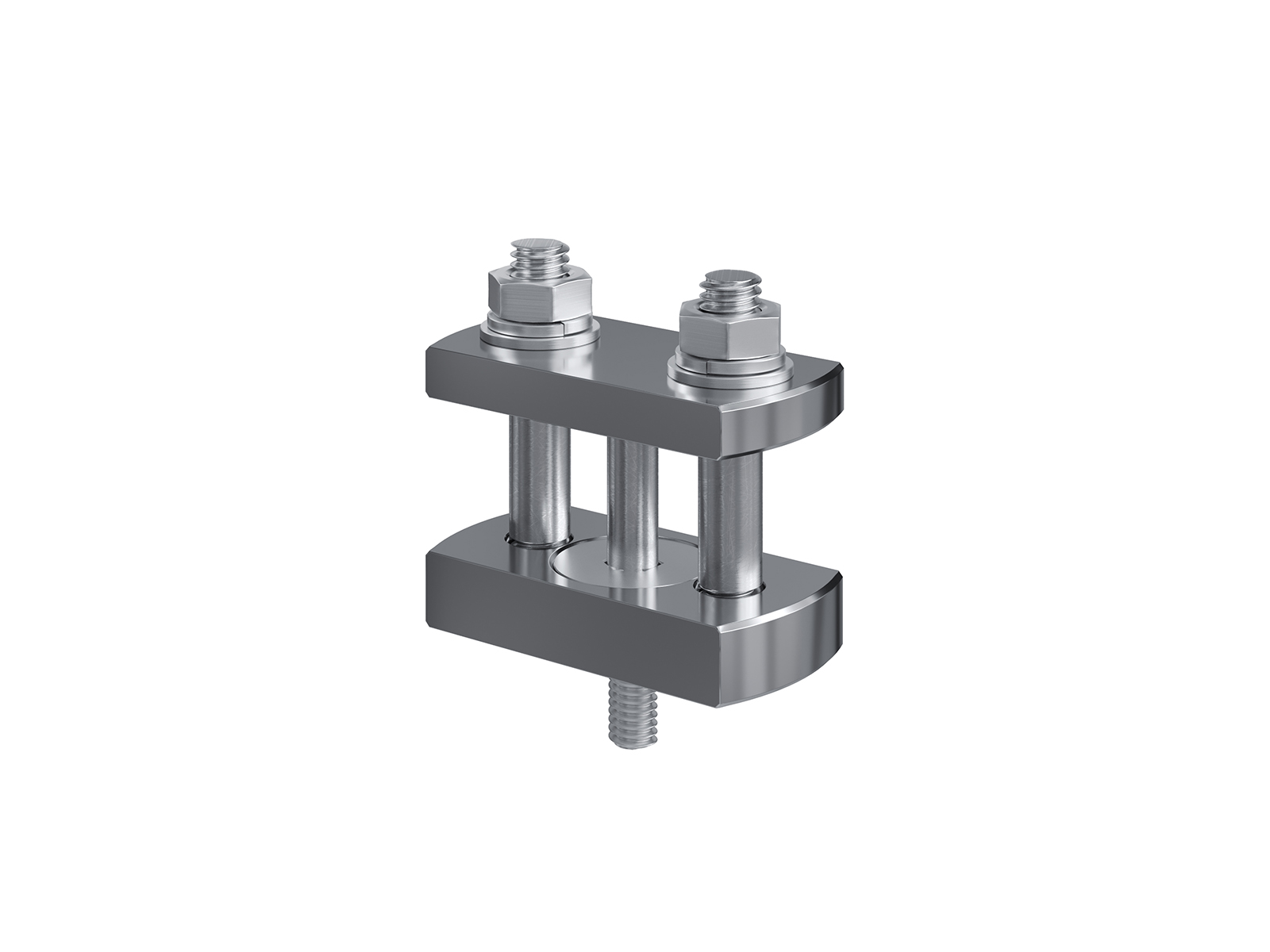 Schienenträger aus vernickeltem Messing zur Befestigung und Sicherung von Stromschienen aus Kupfer