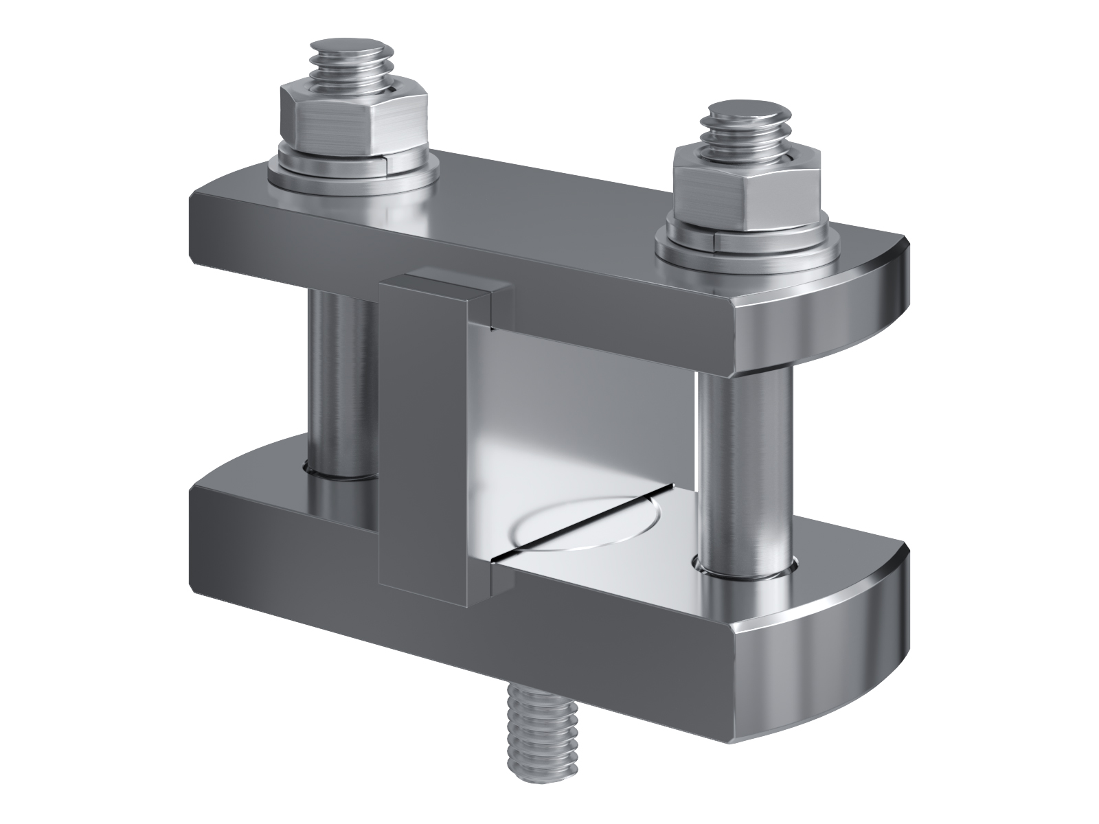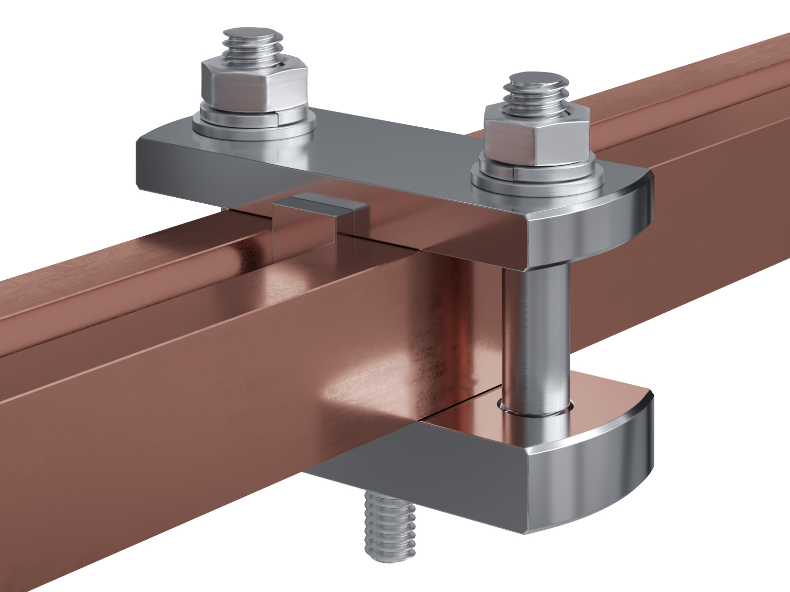 Schienenträger aus vernickeltem Messing zur Befestigung und Sicherung von Stromschienen aus Kupfer