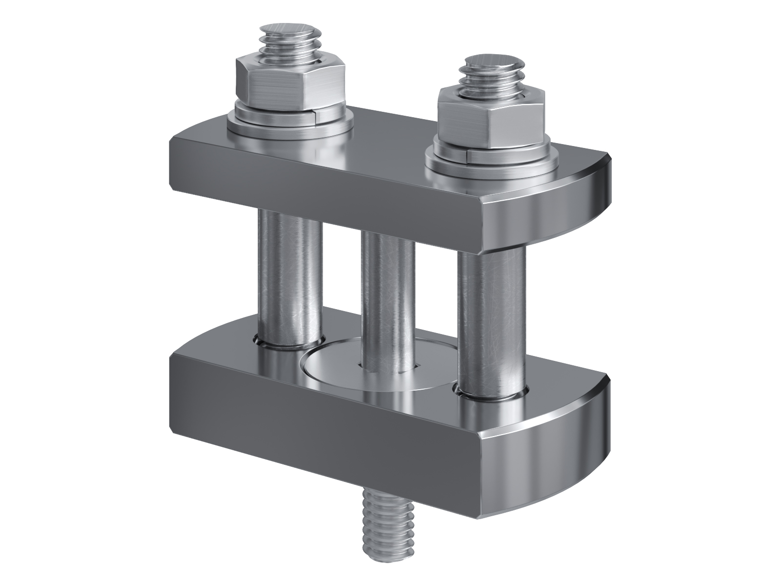 Schienenträger aus vernickeltem Messing zur Befestigung und Sicherung von Stromschienen aus Kupfer