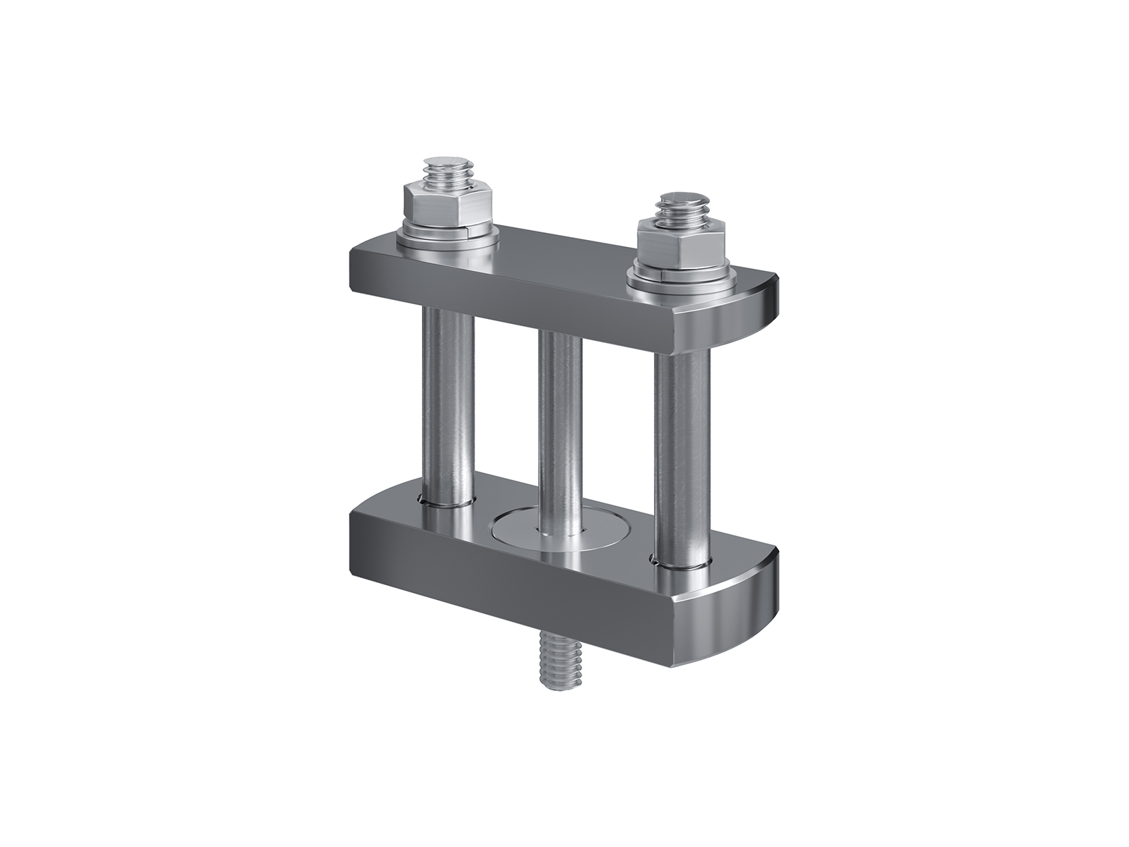 Schienenträger aus vernickeltem Messing zur Befestigung und Sicherung von Stromschienen aus Kupfer
