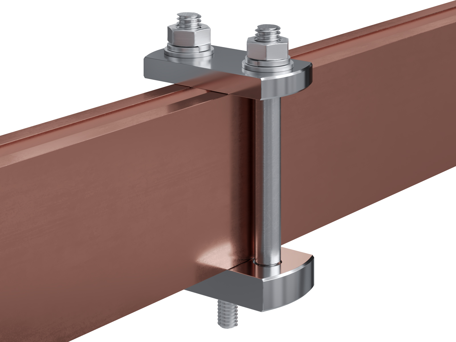 Schienenträger aus vernickeltem Messing zur Befestigung und Sicherung von Stromschienen aus Kupfer