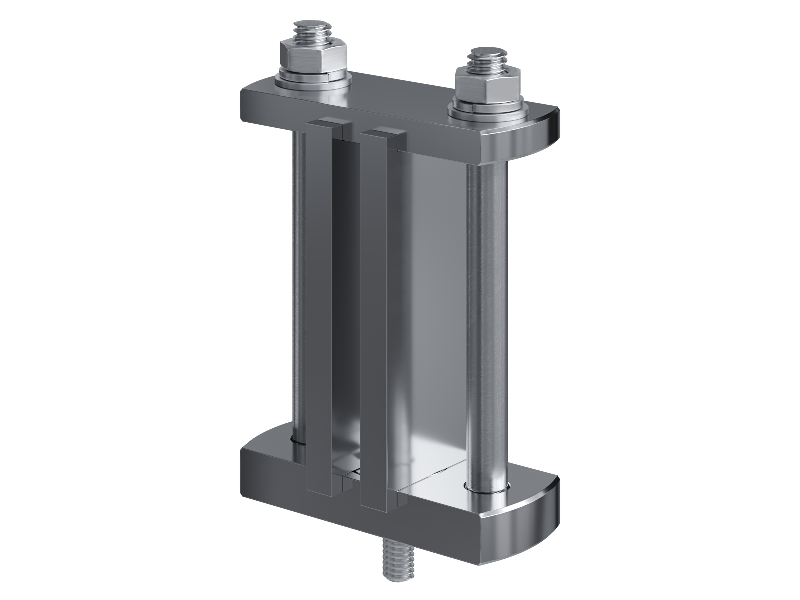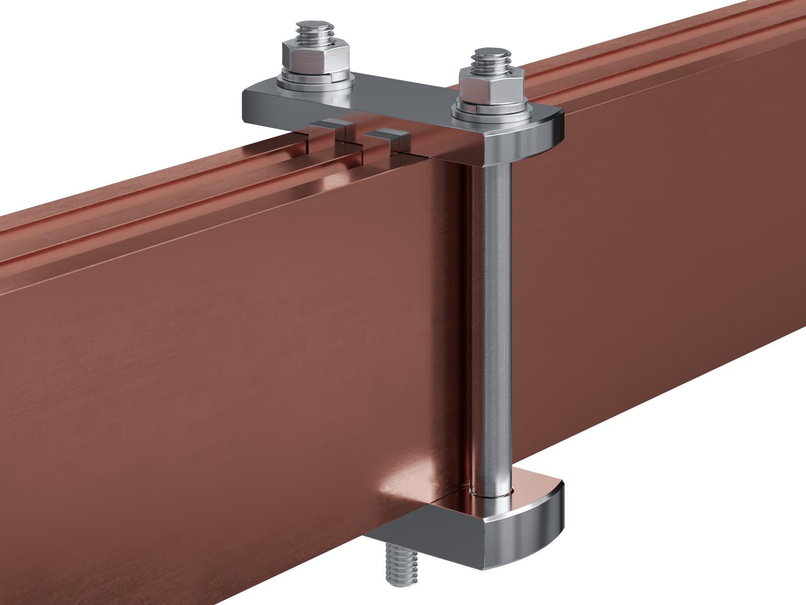 Schienenträger aus vernickeltem Messing zur Befestigung und Sicherung von Stromschienen aus Kupfer