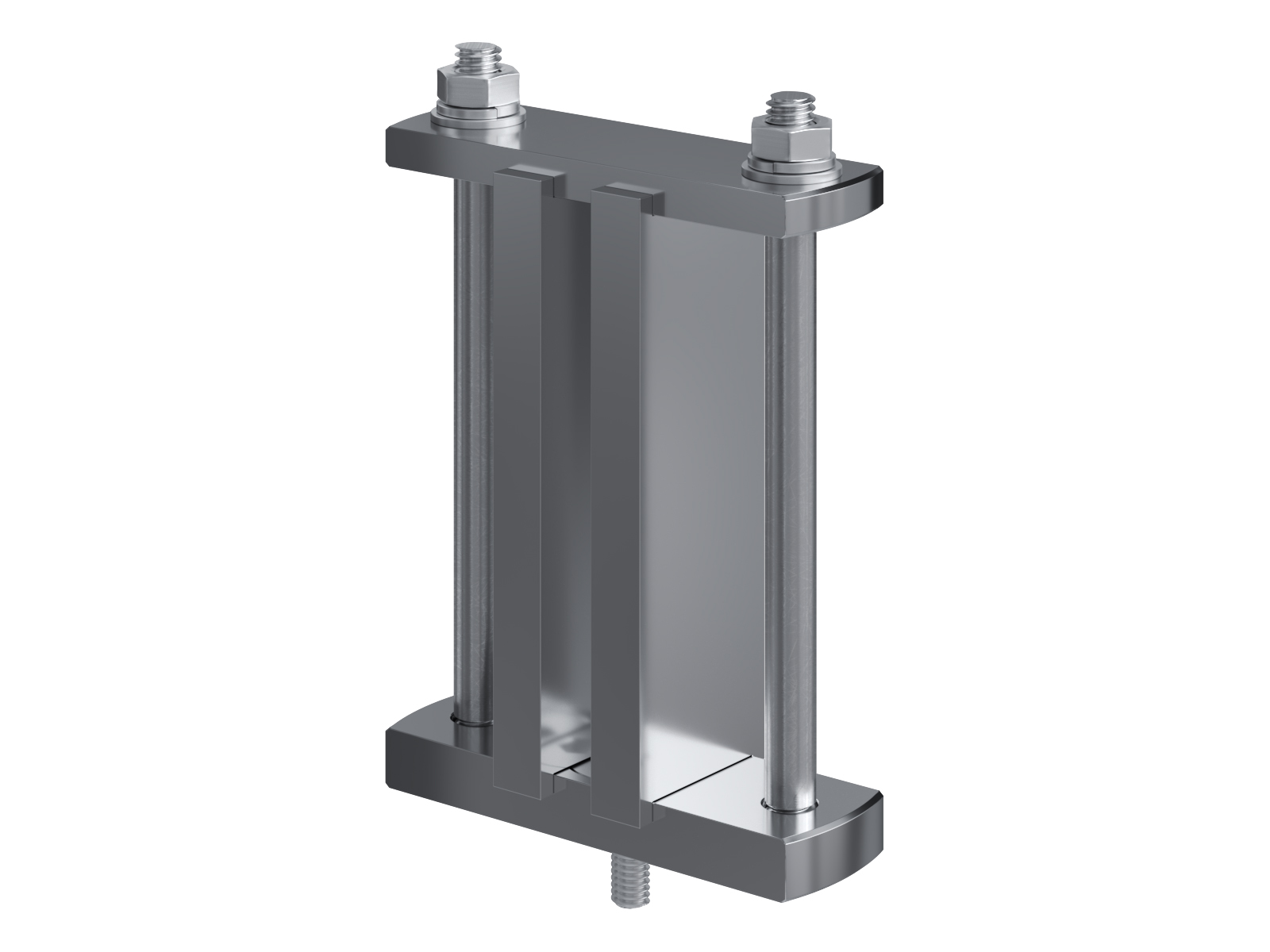 Schienenträger aus vernickeltem Messing zur Befestigung und Sicherung von Stromschienen aus Kupfer