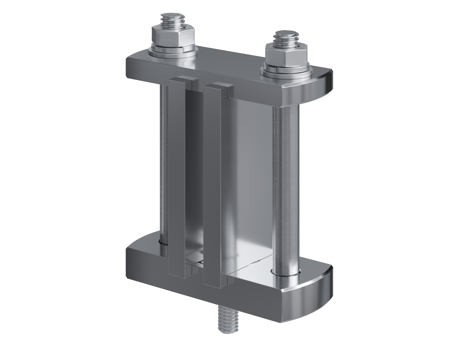 Schienenträger aus vernickeltem Messing zur Befestigung und Sicherung von Stromschienen aus Kupfer
