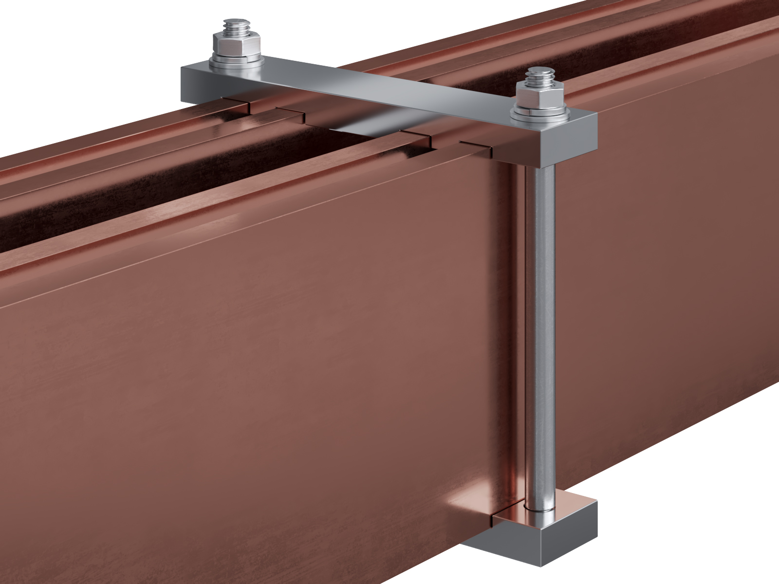 Schienenträger aus vernickeltem Messing zur Befestigung und Sicherung von Stromschienen aus Kupfer