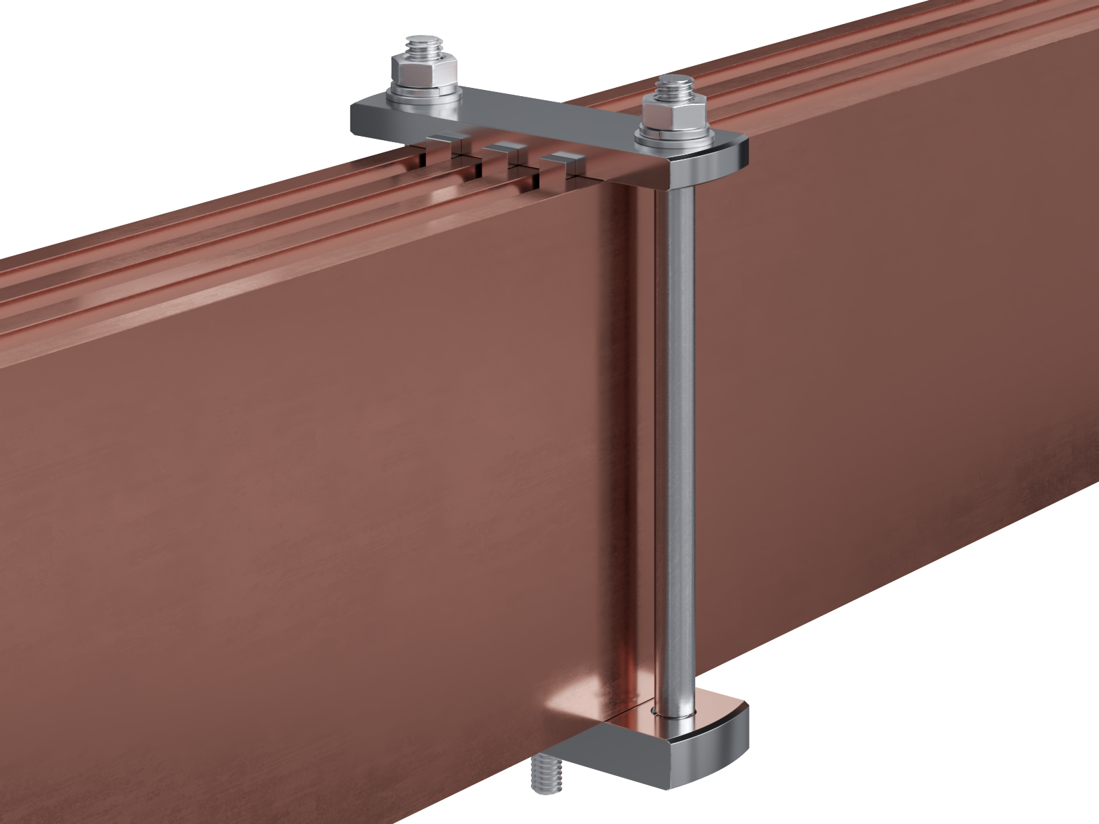 Schienenträger aus vernickeltem Messing zur Befestigung und Sicherung von Stromschienen aus Kupfer