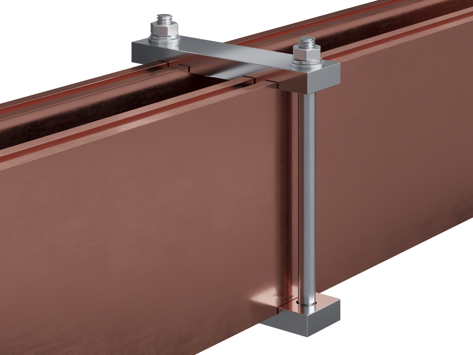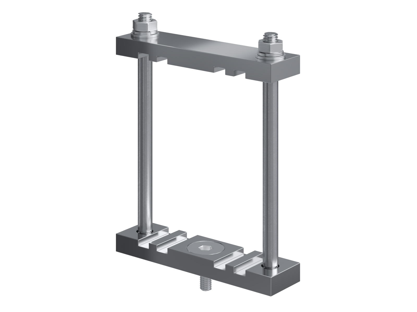 Schienenträger aus vernickeltem Messing zur Befestigung und Sicherung von Stromschienen aus Kupfer