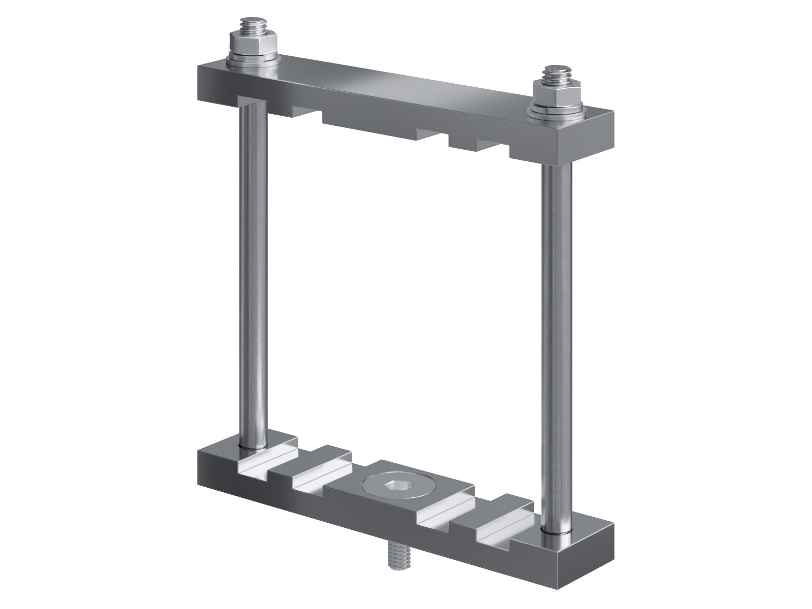 Schienenträger aus vernickeltem Messing zur Befestigung und Sicherung von Stromschienen aus Kupfer