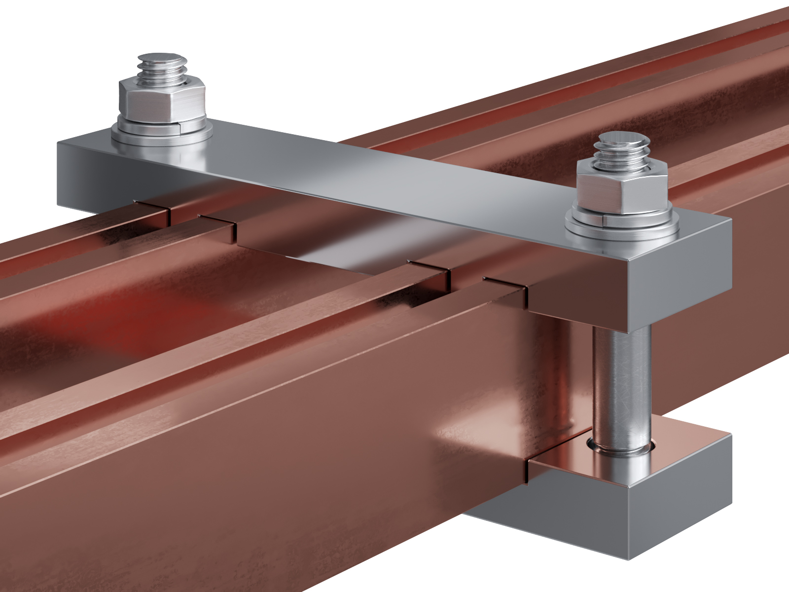 Schienenträger aus vernickeltem Messing zur Befestigung und Sicherung von Stromschienen aus Kupfer