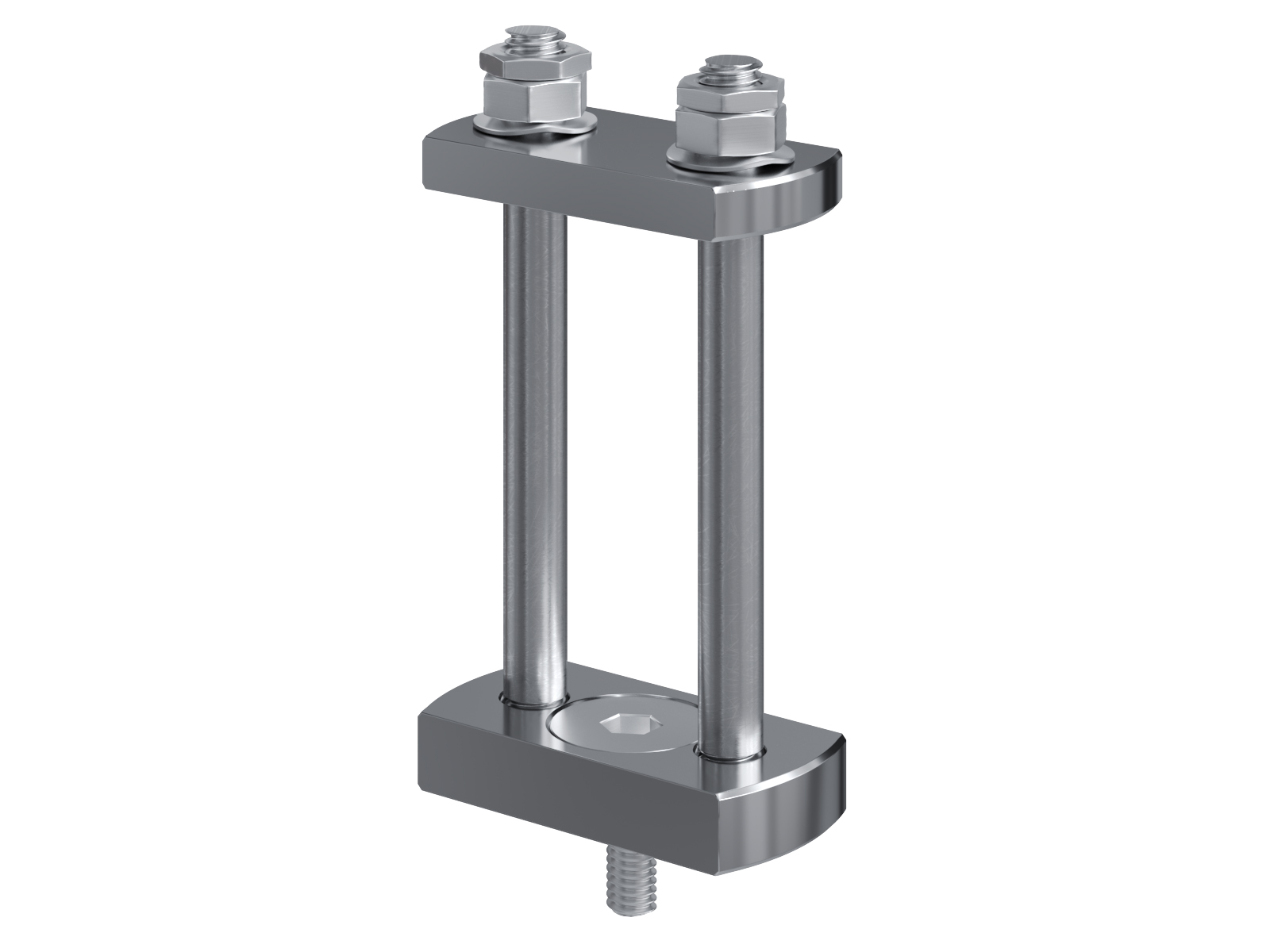 Schienenträger aus vernickeltem Messing zur Befestigung und Sicherung von Stromschienen aus Kupfer