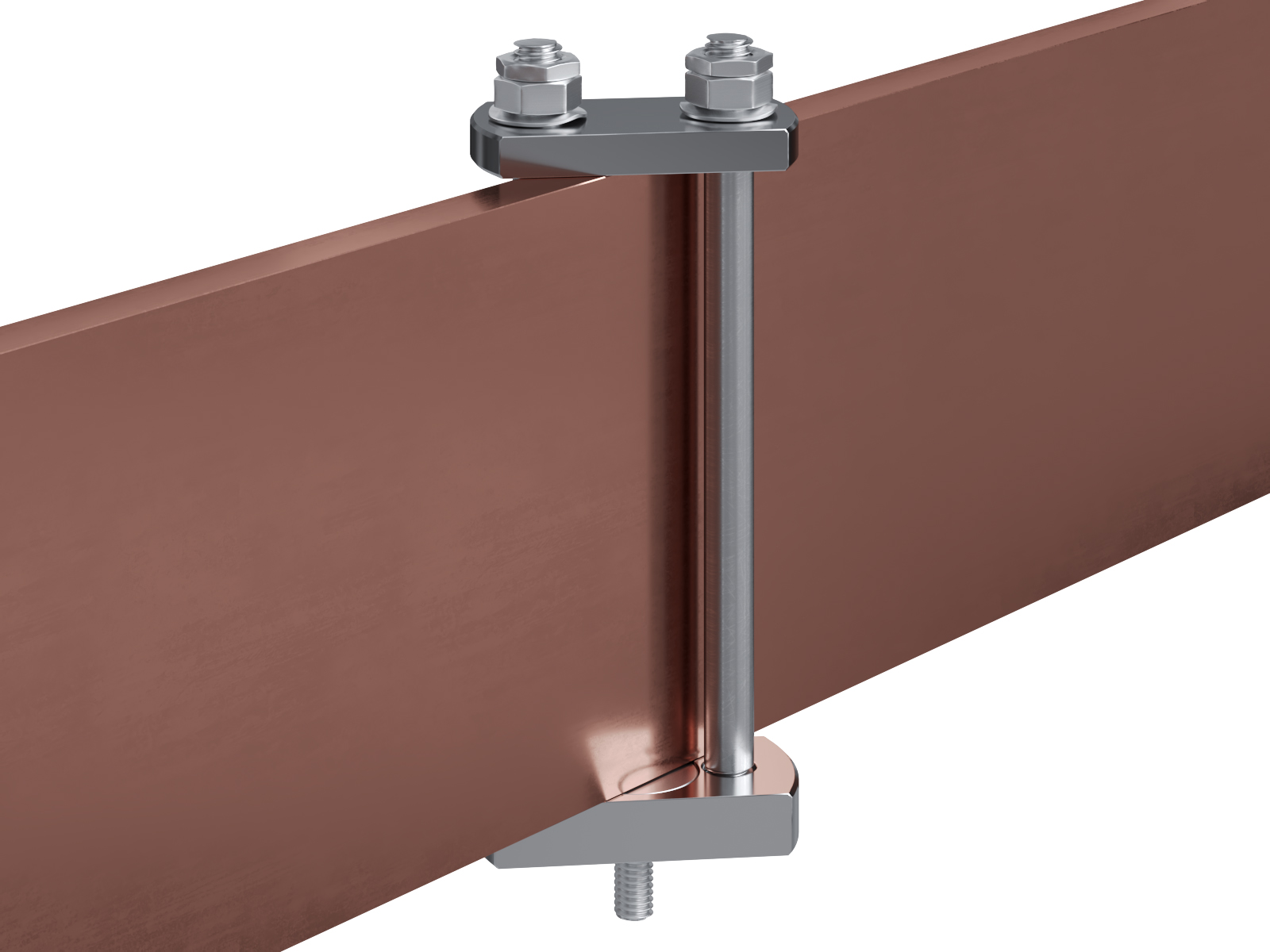 Schienenträger aus vernickeltem Messing zur Befestigung und Sicherung von Stromschienen aus Kupfer