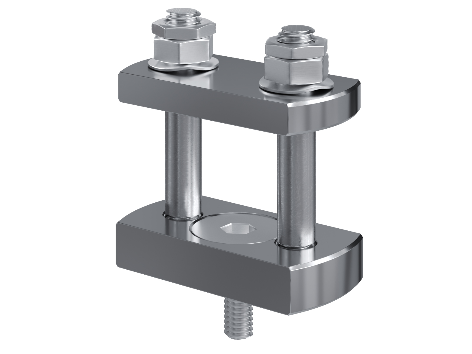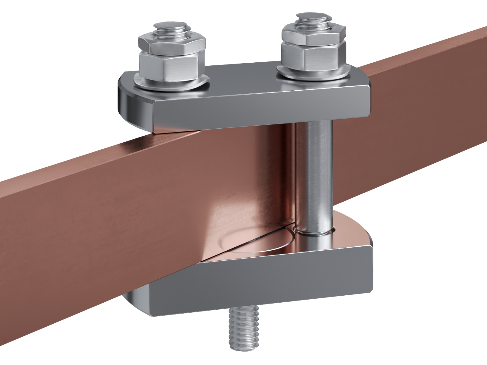 Schienenträger aus vernickeltem Messing zur Befestigung und Sicherung von Stromschienen aus Kupfer