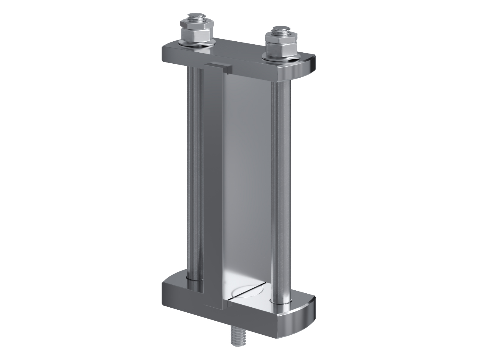 Schienenträger aus vernickeltem Messing zur Befestigung und Sicherung von Stromschienen aus Kupfer